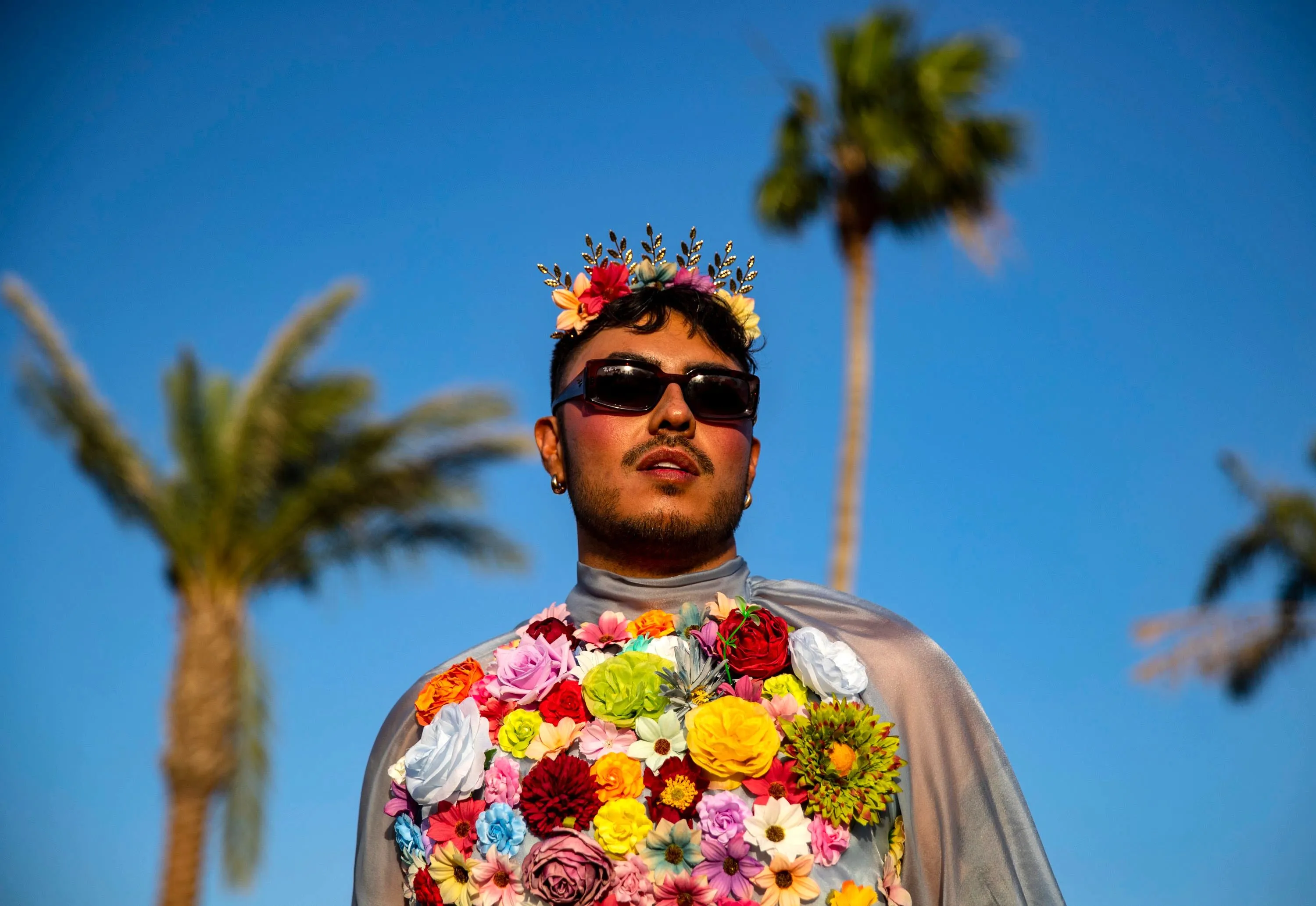 McEdgar Castro of Salt Lake City poses for a photo during the Coachella Valley Music and Arts Festival in Indio, Calif., on Friday, April 12, 2024. (Photo by Andy Abeyta/The Desert Sun)