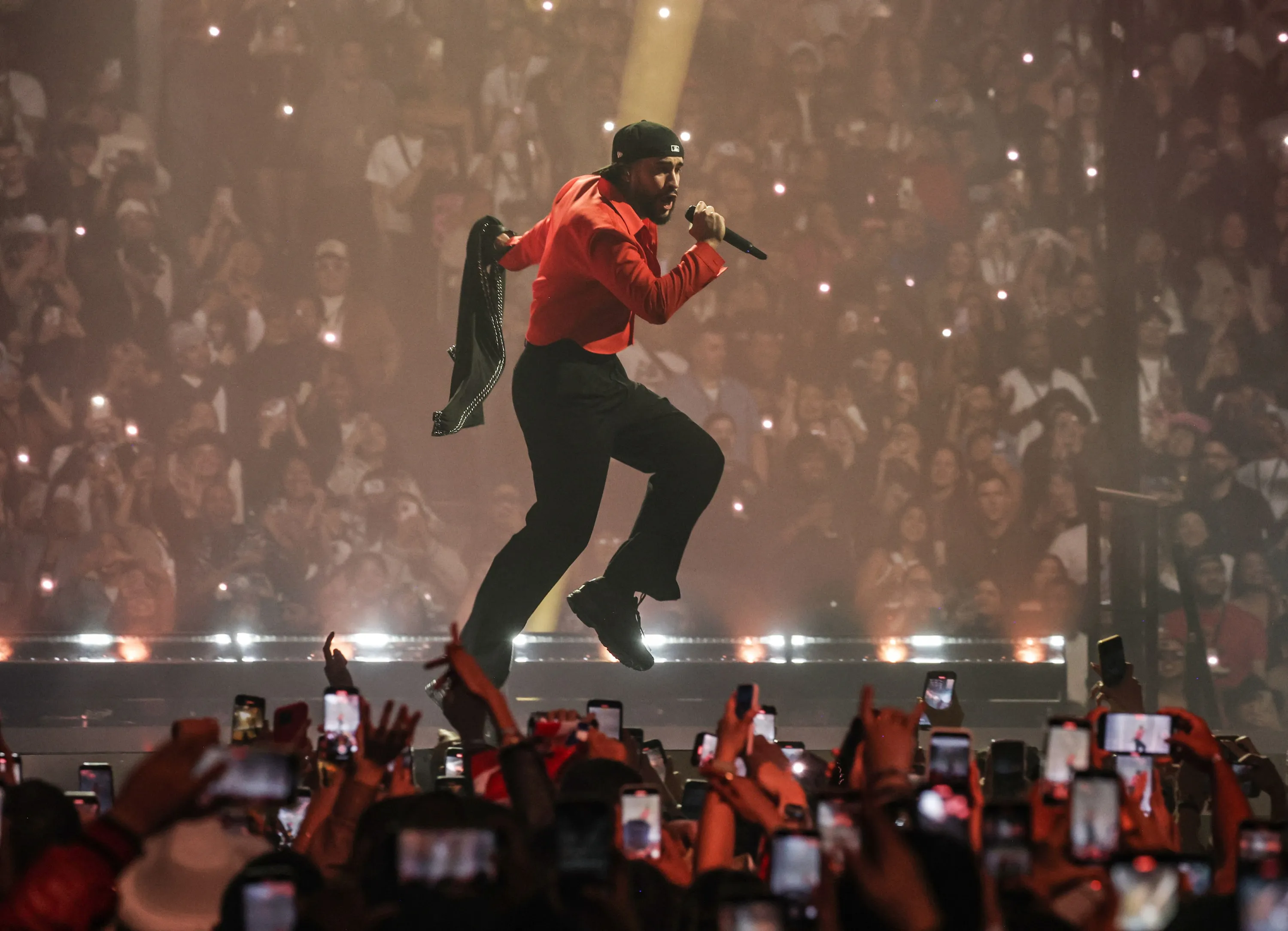 The rapper Bad Bunny performs during his “Most Wanted” tour at Barclays Center on April 11, 2024 in New York City. (Photo by Kevin Mazur/WireImage)