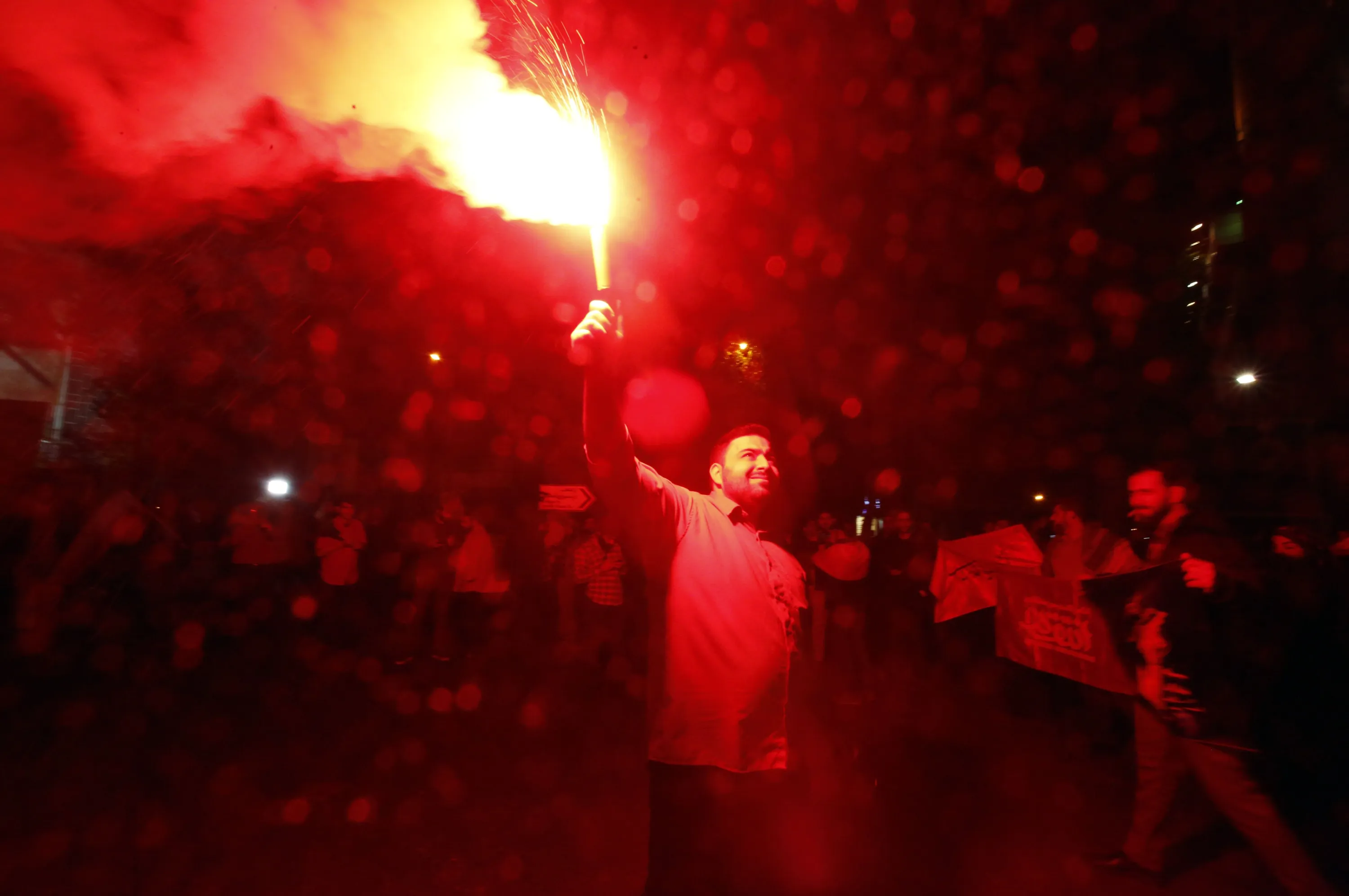 Iranians celebrate after Iran launched drone attacks against Israel at Palestine Square in Tehran, Iran, early morning of 14 April 2024. Iran's Islamic Revolutionary Guards Corps (IRGC) launched drones and rockets towards Israel late on 13 April 2024, Iranian officials said. (Photo by Abedin Taherkenareh/EPA/EFE)