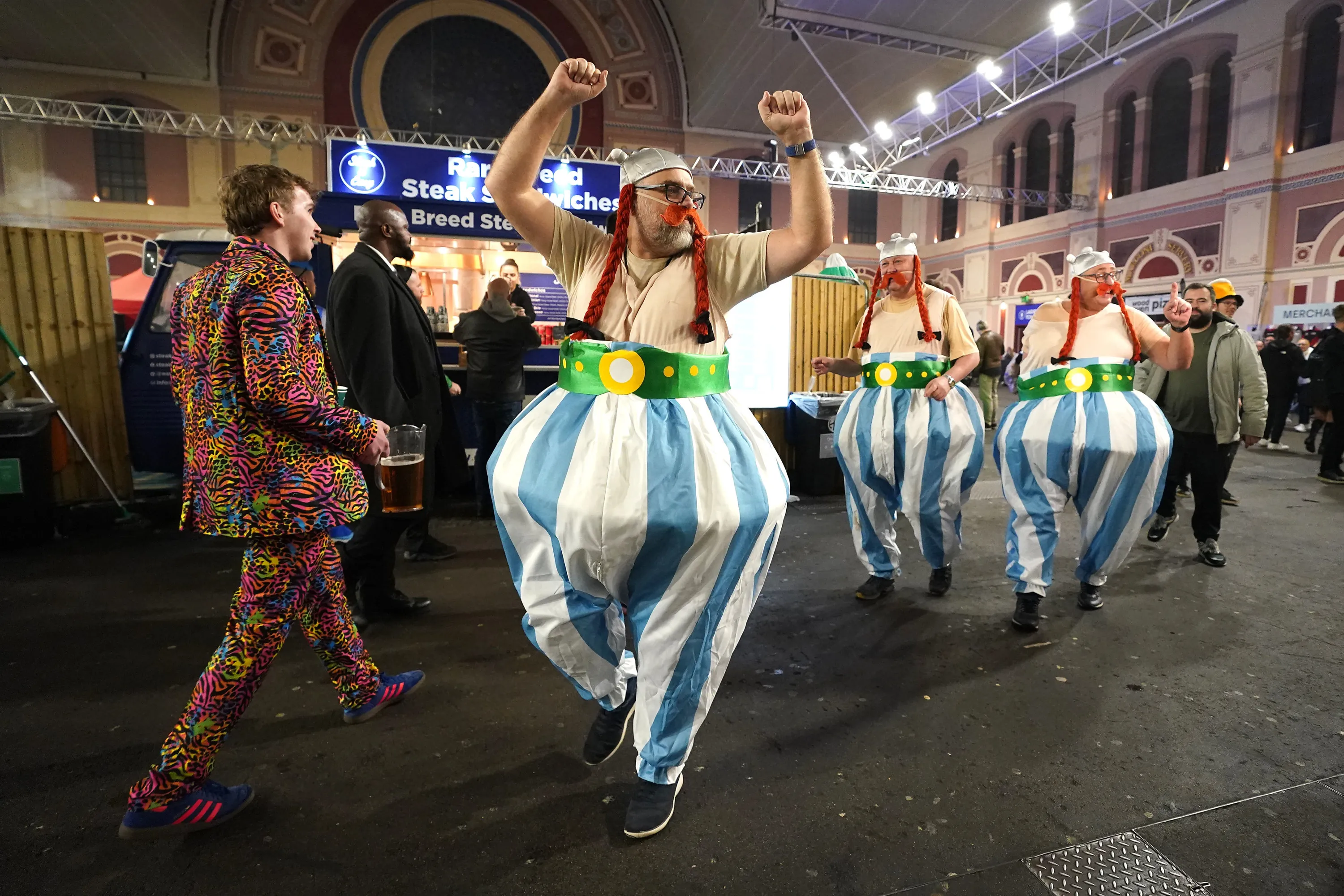 Fans in fancy dress ahead of the final of the Cazoo World Darts Championship at Alexandra Palace, London on Tuesday, January 3, 2023. (Photo by Zac Goodwin/PA Wire)