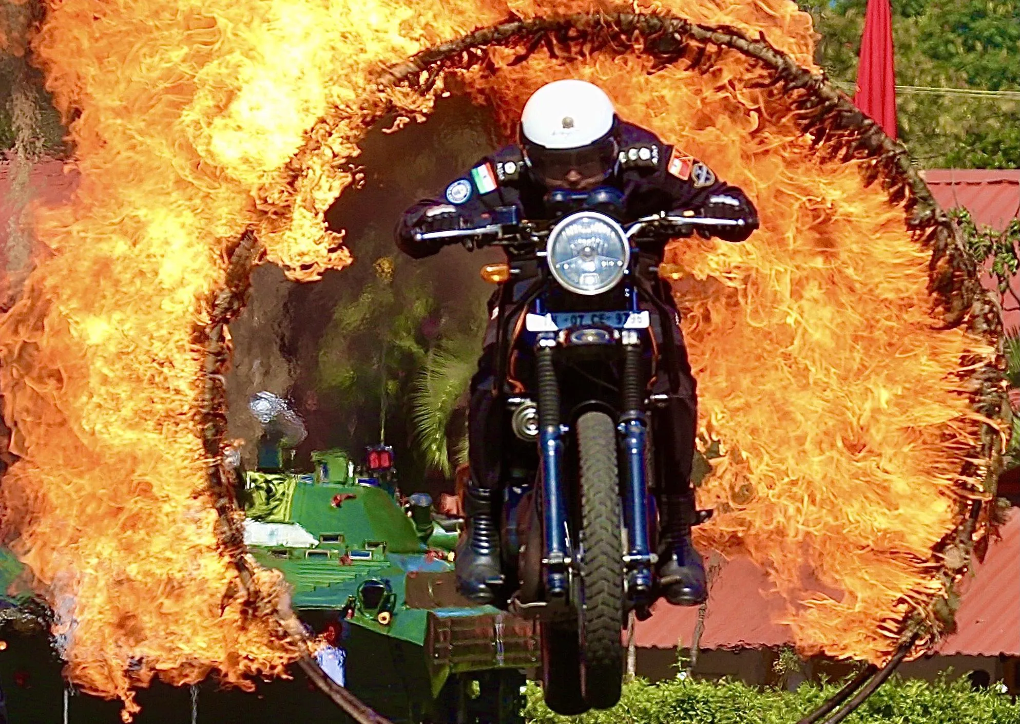 Members of the Indian Army Service Corps (ASC) team known as the “Tornadoes” display their biking skills during the “Indian Army Day” parade at Madras Engineer Group (MEG) in Bangalore, India, 15 January 2023. The 75th Army Day parade was held in the southern Indian city of Bangalore, for the first time outside the national capital. The Indian Army Day is annually celebrated on 15 January. (Photo by Jagadeesh N.V./EPA/EFE/Rex Features/Shutterstock)