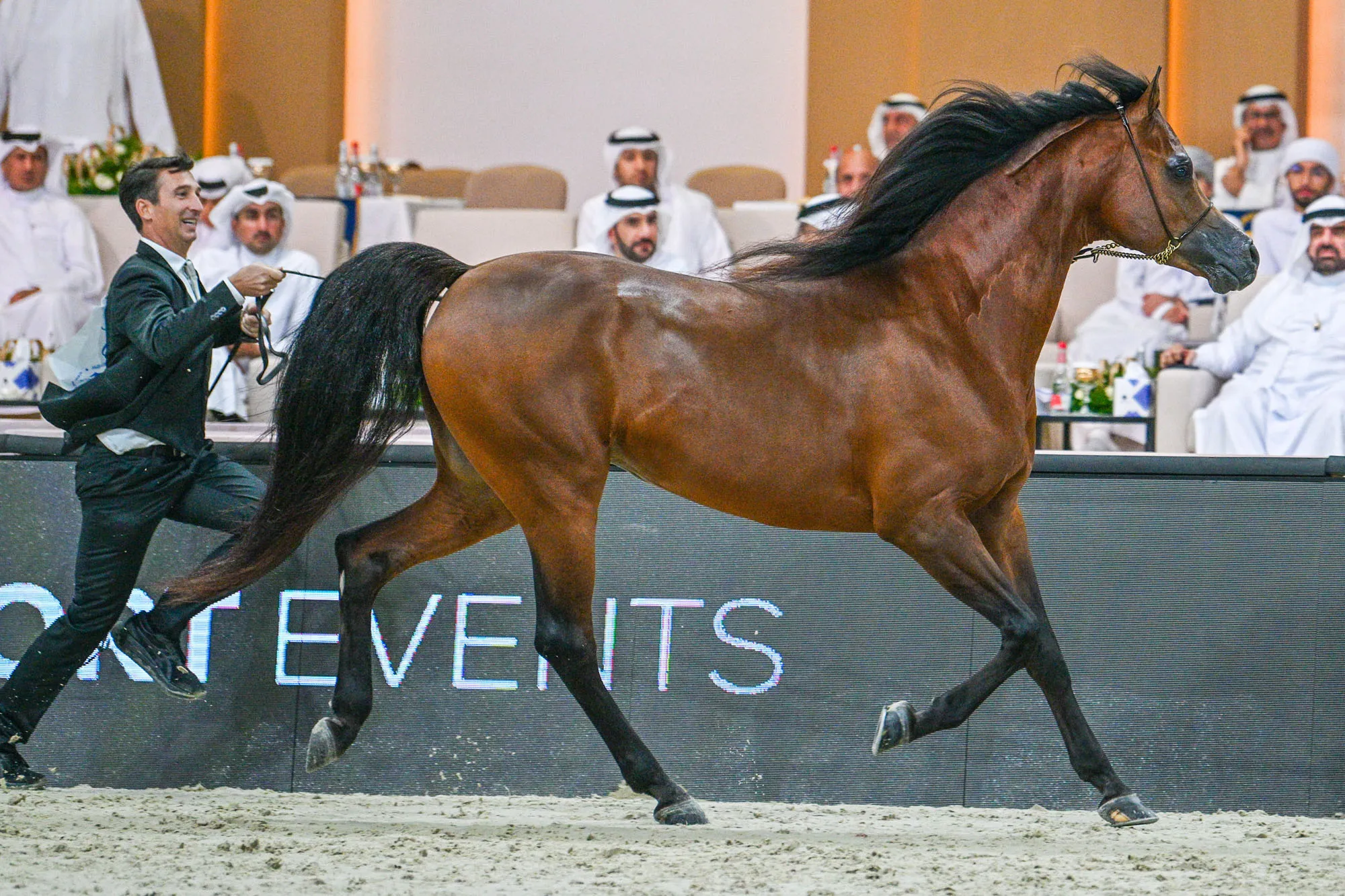 Horses compete during the 21st Dubai International Arabian Horse Championship with the participation of 205 horses from many countries in Dubai, UAE on March 24, 2024. (Photo by Waleed Zein/Anadolu via Getty Images)