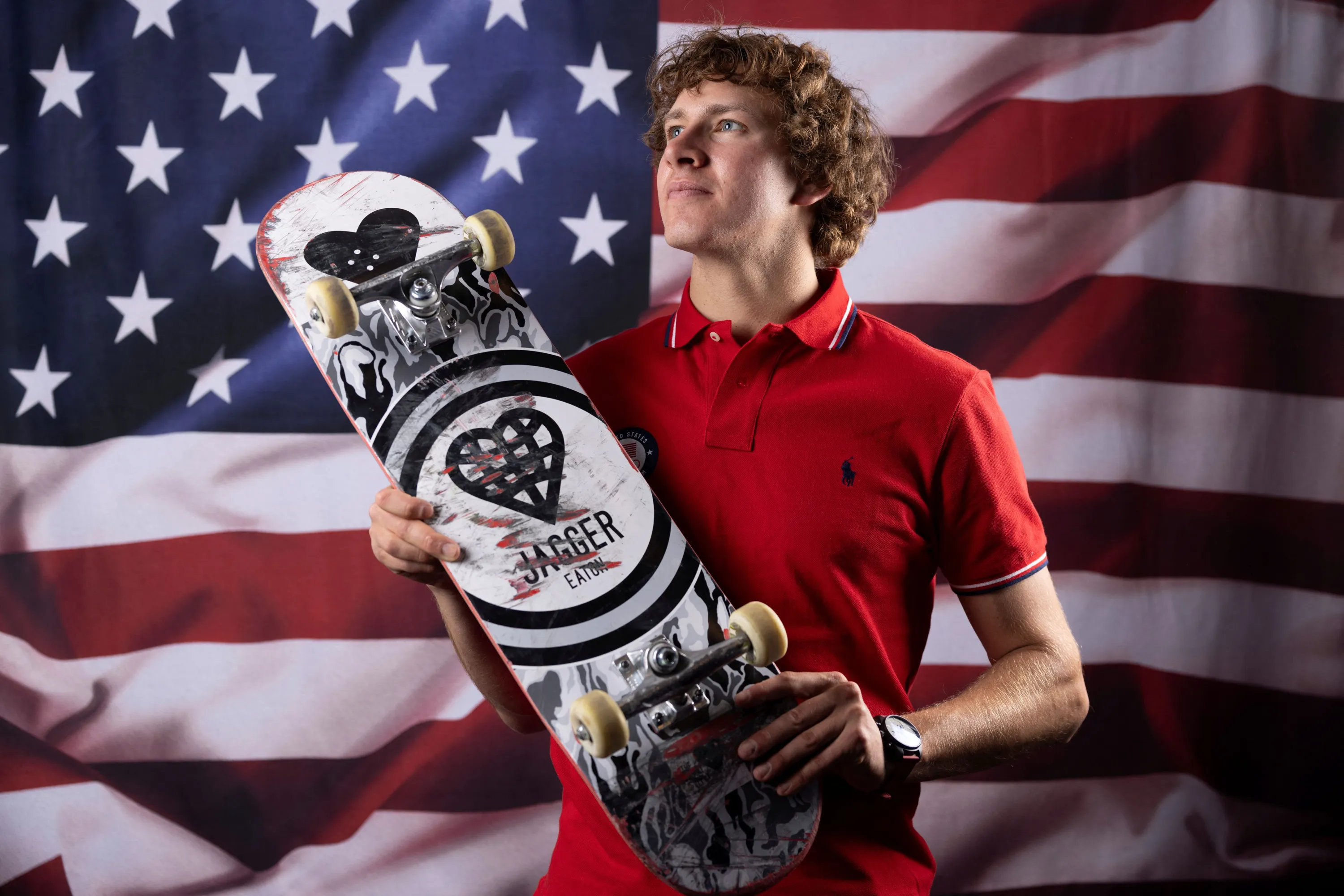 American skateboarder Jagger Eaton poses for a portrait during the Team USA media summit ahead of the Paris Olympics and Paralympics, at an event in New York, U.S., April 17, 2024. (Photo by Andrew Kelly/Reuters)