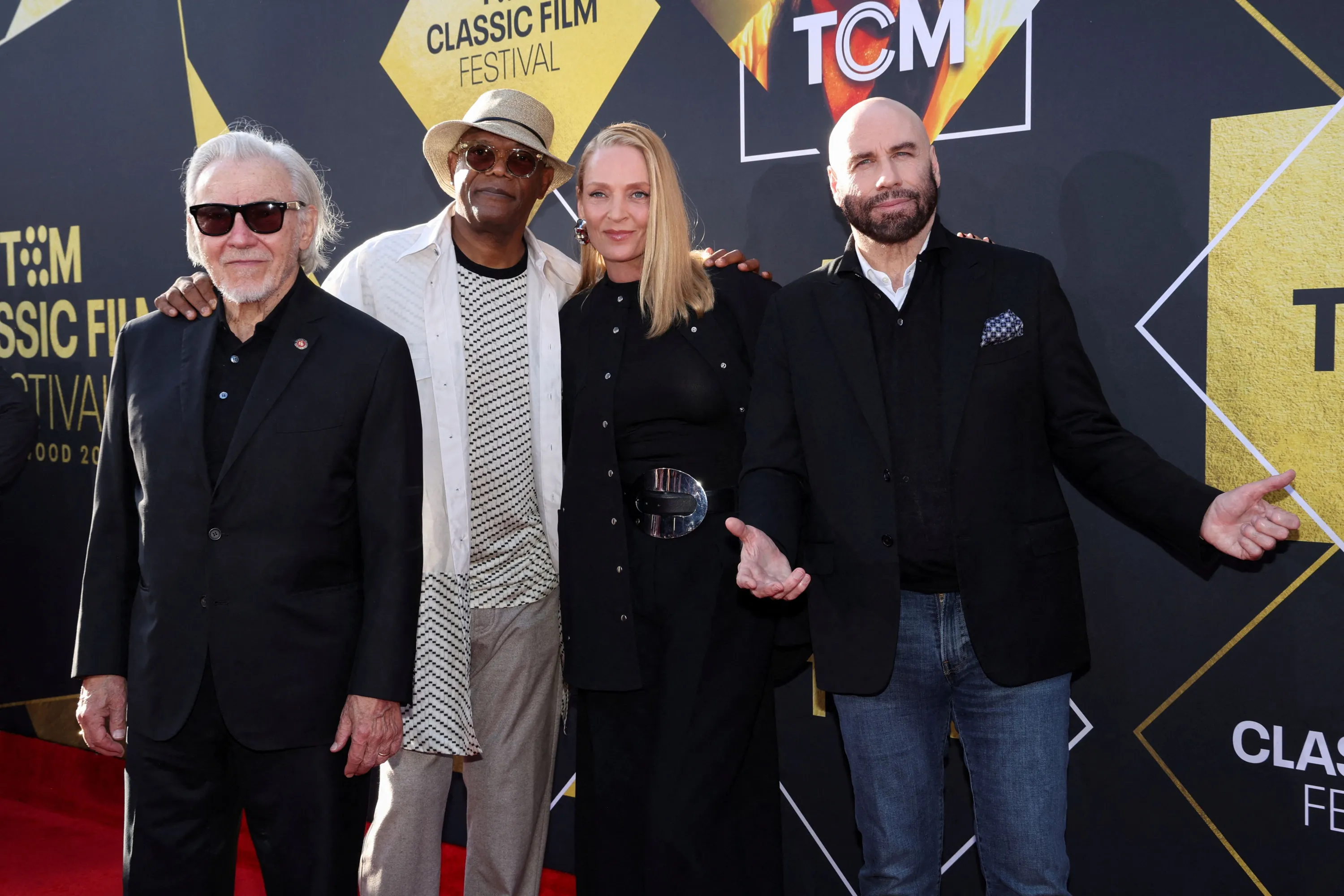 Cast members John Travolta, Uma Thurman, Samuel L. Jackson and Harvey Keitel attend a screening for the 30th anniversary of the movie “Pulp Fiction” in Los Angeles, California, U.S. April 18, 2024. (Photo by Mario Anzuoni/Reuters)