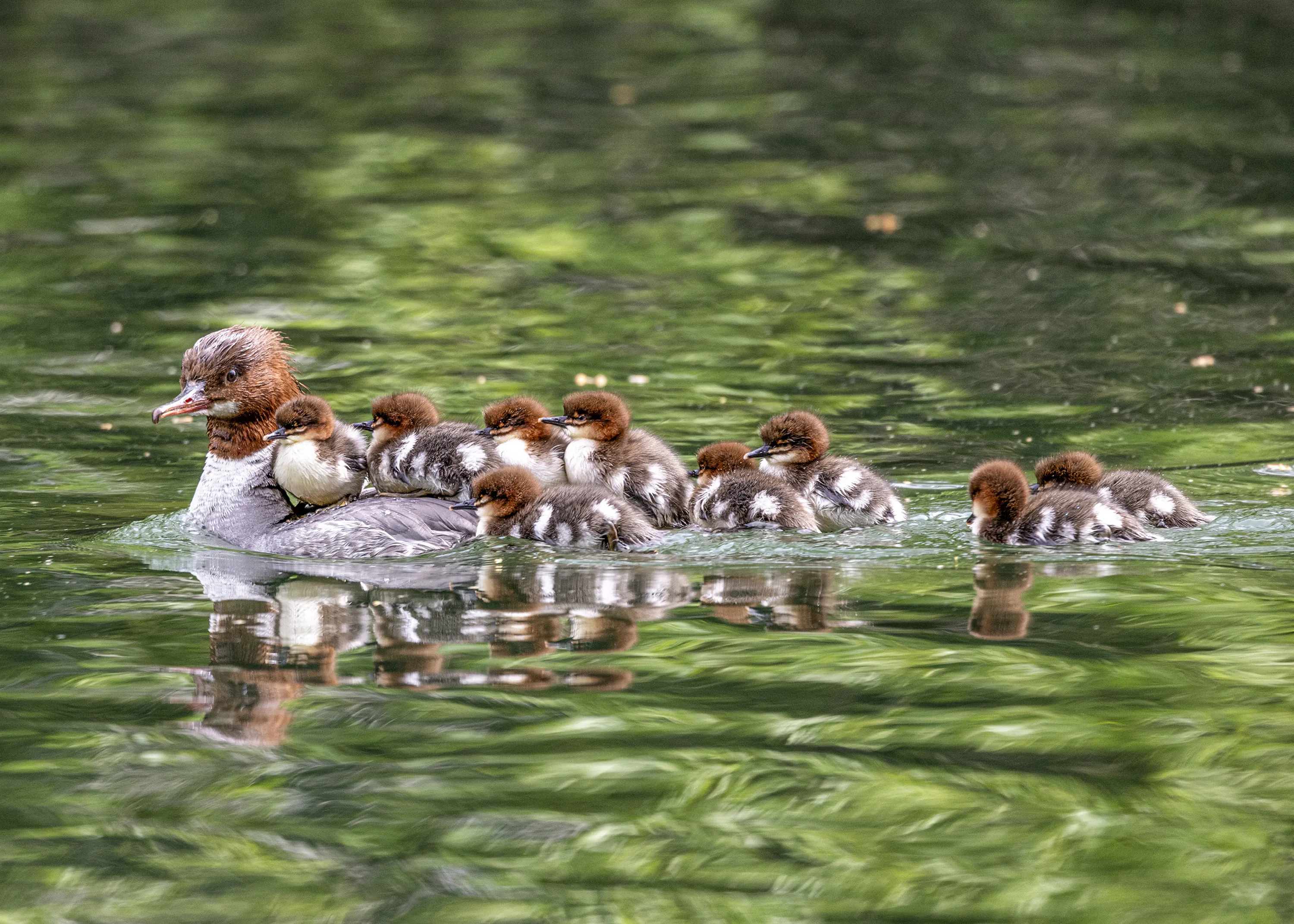 Common mergansers duck out of their swimming lessons in Mulhouse, eastern France in the last decade of April 2024. (Photo by Azim Khan Ronnie/Solent News)