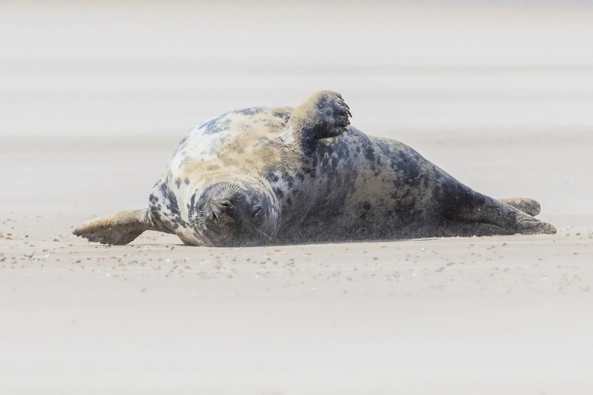 A seal basks in the sun at Blakeney Point on the Norfolk coastline, UK on April 7, 2024. The area is home to England’s largest colony of grey seals, with about 4,000 pups born each year. (Photo by Jack Hill/The Times)