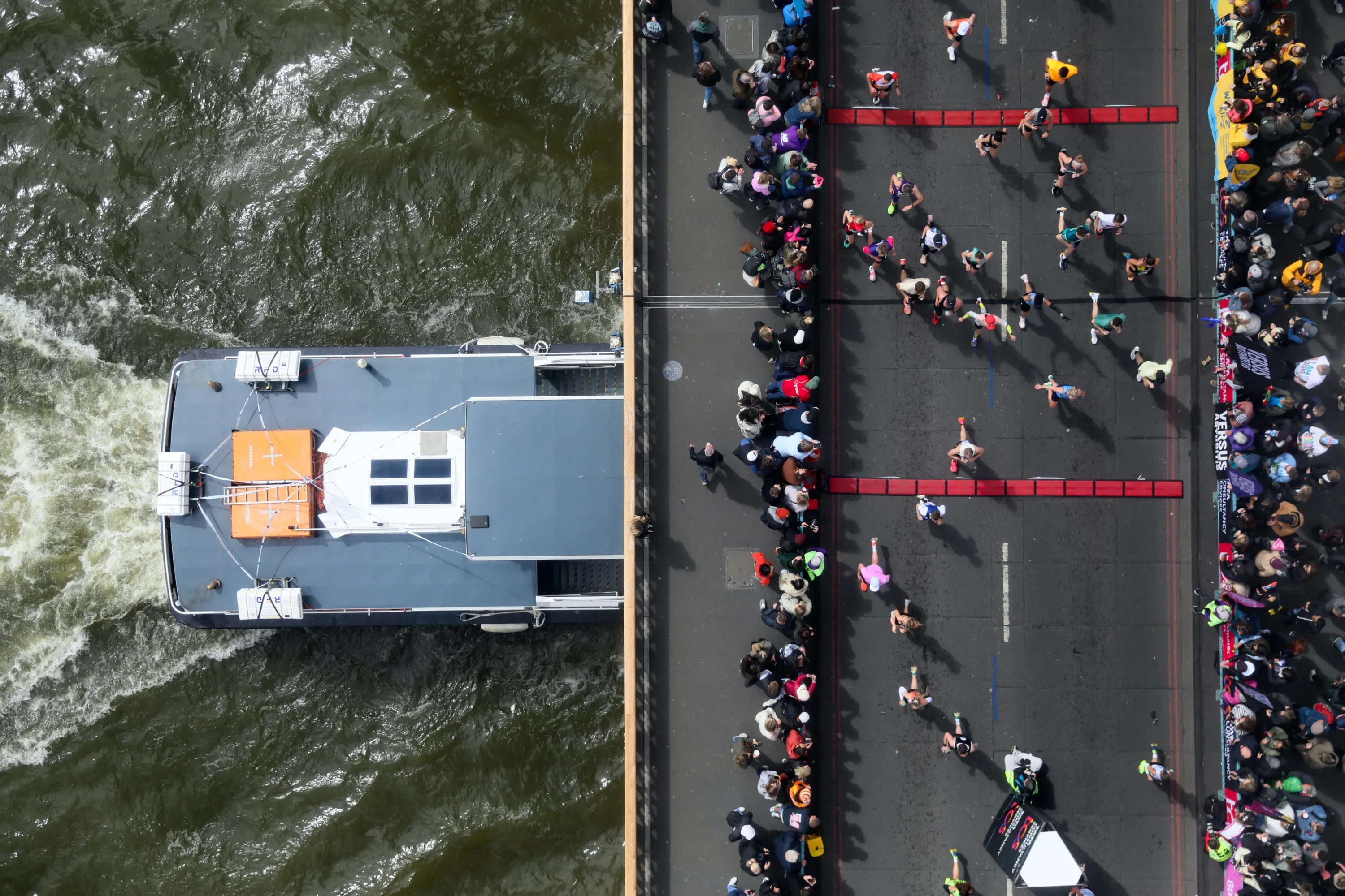 Runners cross Tower Bridge during the 2024 TCS London Marathon at on April 21, 2024 in London, England. The 2024 TCS London Marathon is the 43rd to be run over 26-miles around the capital, Competitive runners typically take between, two and a half to three and a half hours and recreational runners take between four and five hours to complete the distance. (Photo by Alishia Abodunde/Getty Images)