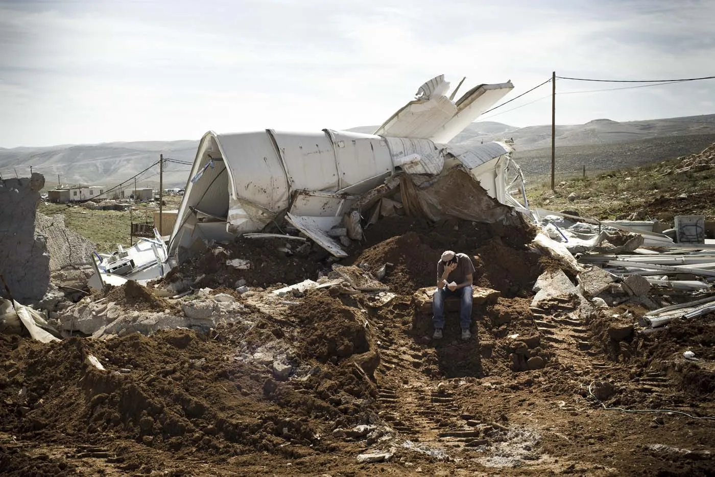 An Israeli settler sits praying among the rubble of his house that was demolished by Israeli police in the outpost of Maale Rehavam, in the Israeli occupied Palestinian West Bank, on February 13, 2013. The house was built without any authorization outside the larger state-sanctioned settlement. The number of Israeli settlers in the occupied West Bank grew by 4.7% in 2012, according to figures obtained by AFP from a settler organisation. (Photo by Janos Chiala/AFP Photo)