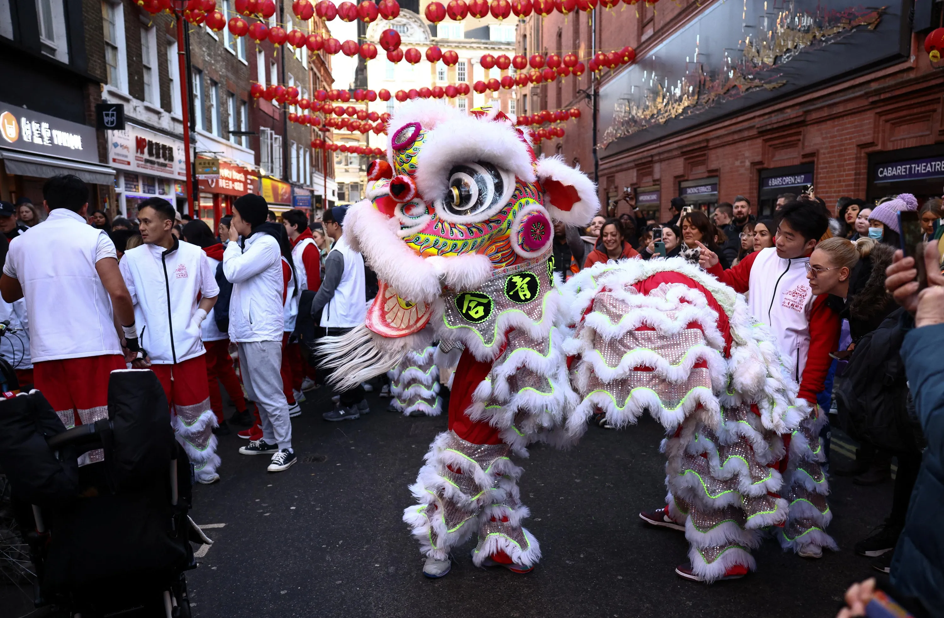 A Chinese lion dance is performed in Chinatown during Lunar New Year celebrations in London, Britain on January 21, 2023. (Photo by Henry Nicholls/Reuters)