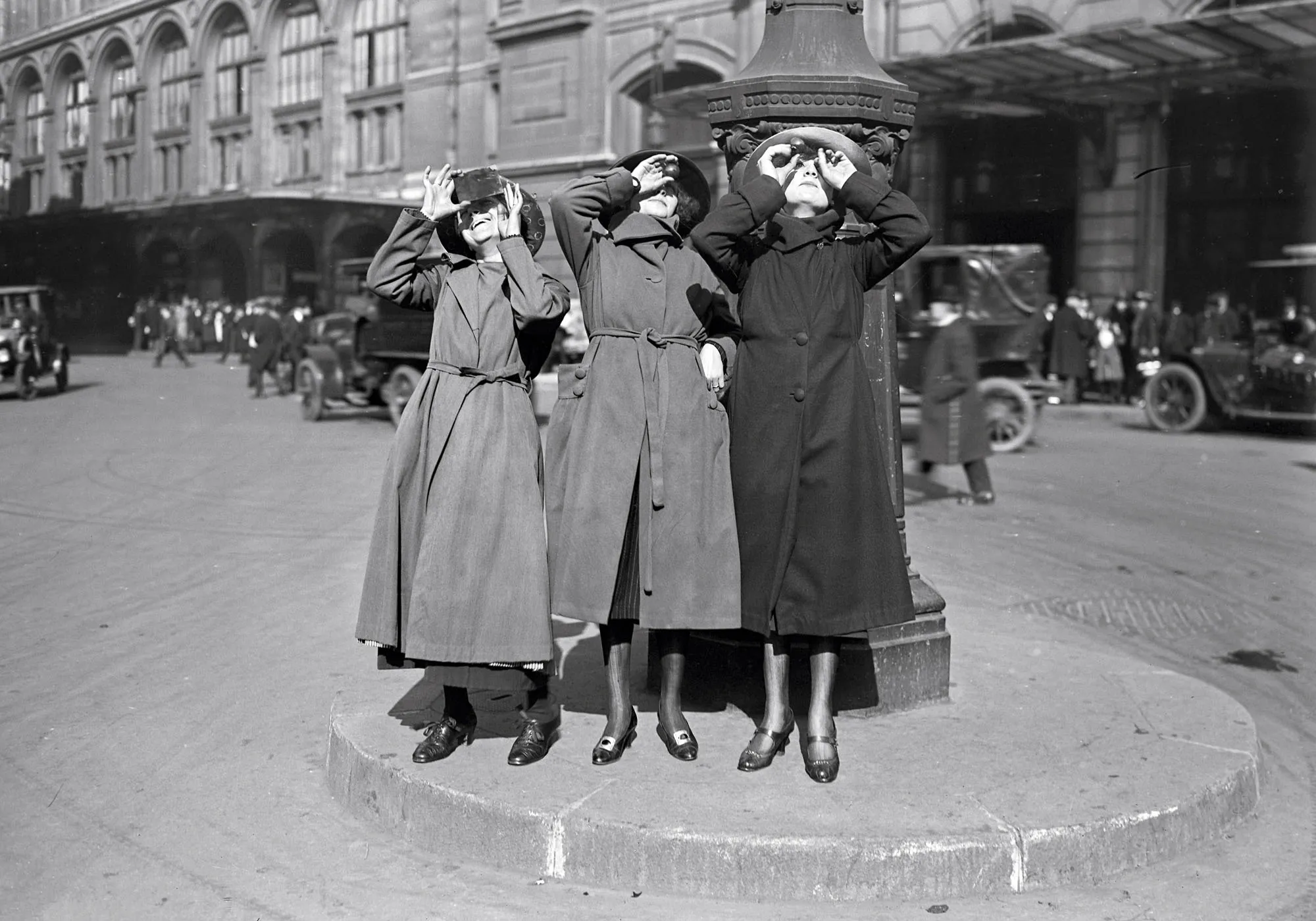 Women observing the Solar eclipse of April 8, 1921 in Paris, France. (Photo by adoc-photos/Corbis via Getty Images)