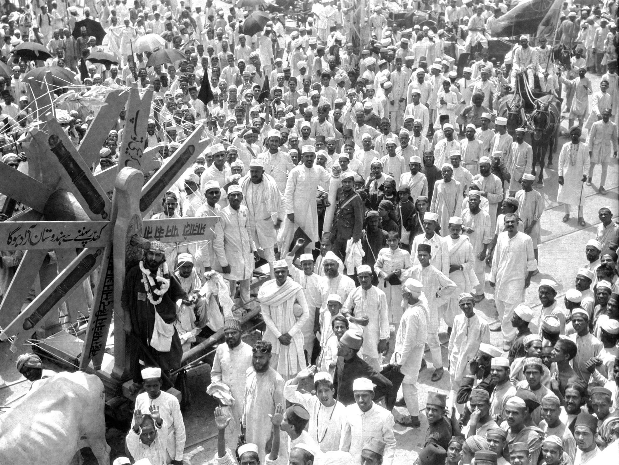Original caption, from India, in August of 1922: “A Gandhi procession reminds one of a carnival celebration. Volunteers in the non-cooperative movement dress in their home-woven costumes and shout 'Swaraj' (home-rule). A huge spinning wheel leads the procession as an emblem of Gandhiism”. (Photo by Bettmann Archive)