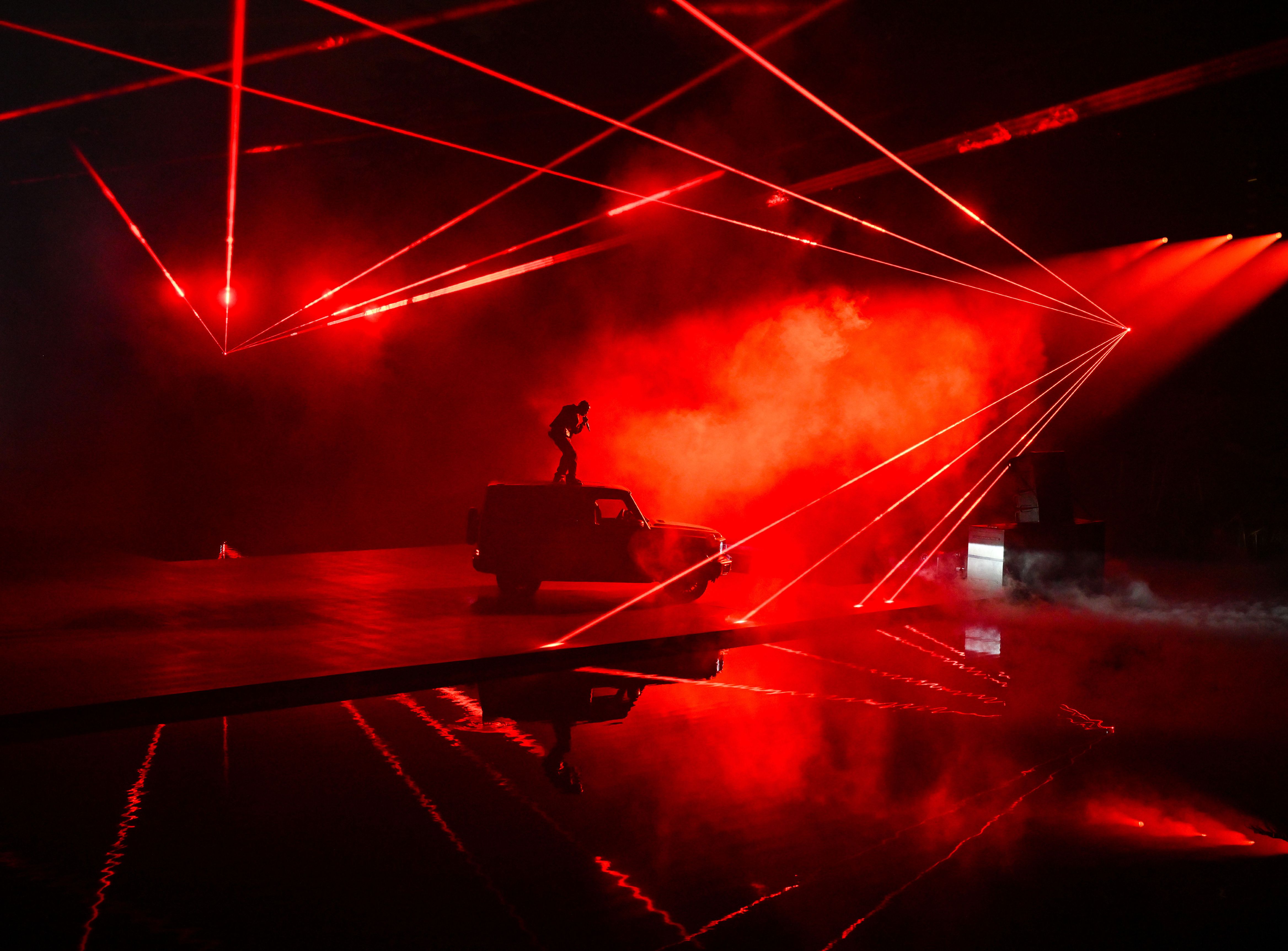 American rapper Travis Scott performs at the Mercedes-Benz all new G-Class Los Angeles star-studded world premiere held at Franklin Canyon Park on April 23, 2024 in Beverly Hills, California. (Photo by Gilbert Flores/WWD via Getty Images)