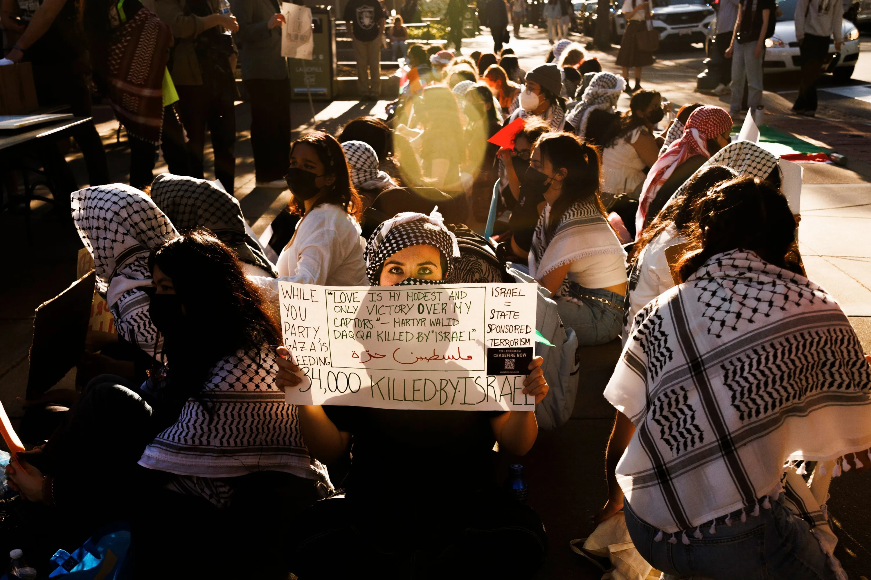 Pro-Palestinian students protest next to a pro-Israeli event held by GWU for Israel, in Kogan Plaza in George Washington University in Washington, District of Columbia on April 18, 2024. (Photo by Aaron Schwartz/ZUMA Press Wire/Rex Features/Shutterstock)