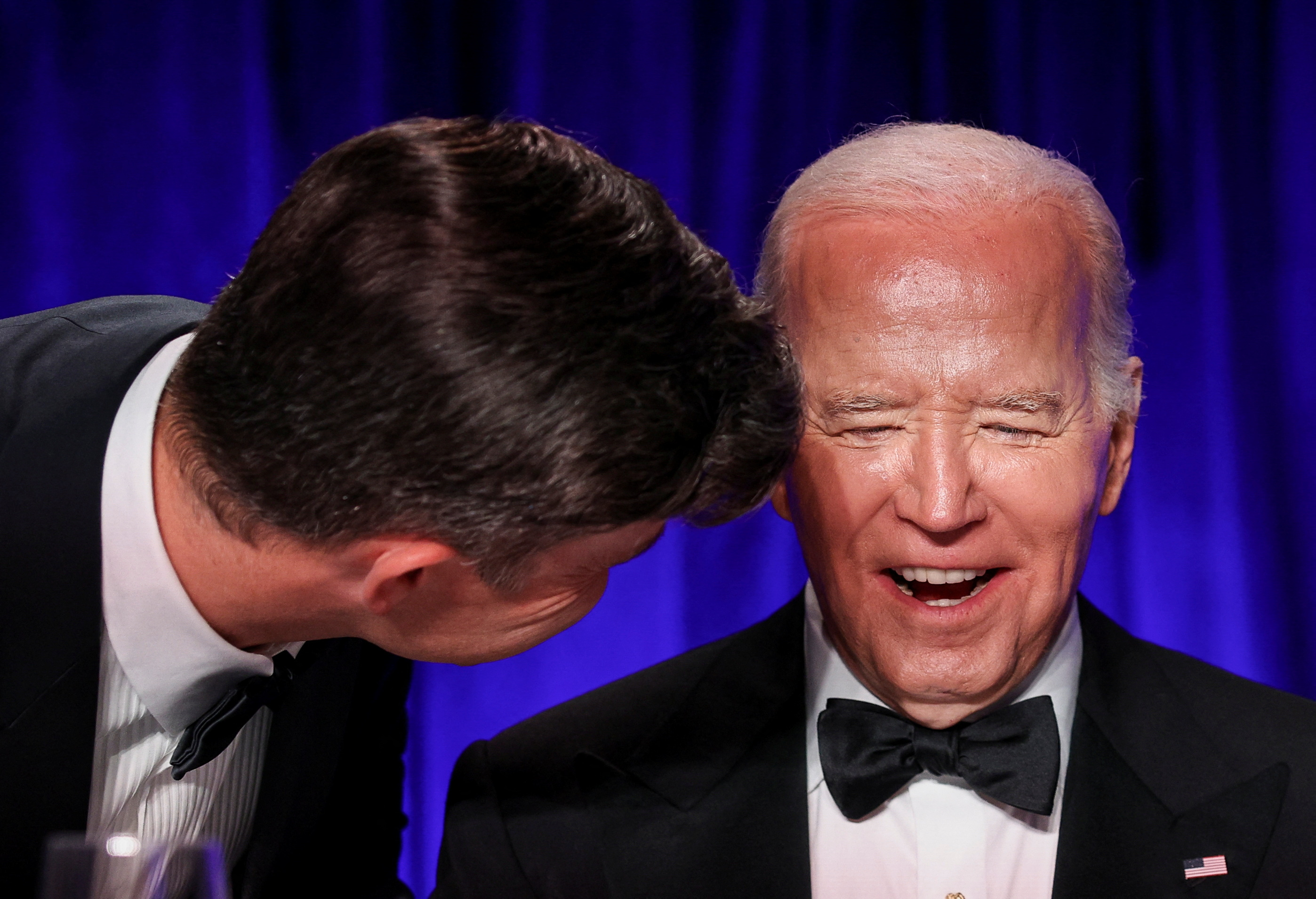 U.S. President Joe Biden reacts as host Colin Jost speaks to him during the White House Correspondents' Association Dinner in Washington, U.S., April 27, 2024. (Photo by Tom Brenner/Reuters)