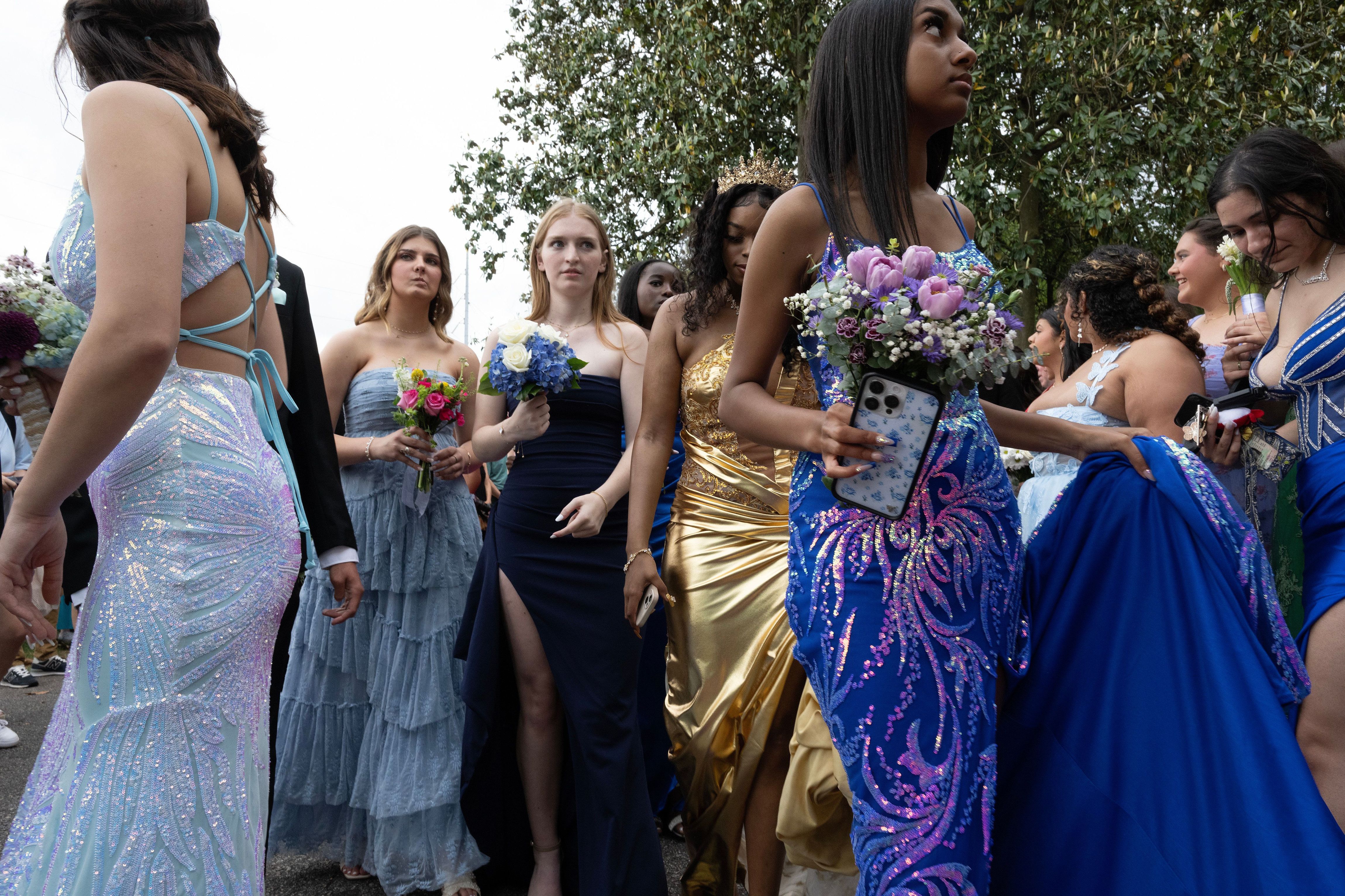 Seniors from Marietta high school class of 2024 gather at Brumby Hall historic site for a group photo before the school’s prom on Saturday, April 27, 2024 in Georgia, US. (Photo by Robin Rayne/ZUMA Press Wire/Rex Features/Shutterstock)