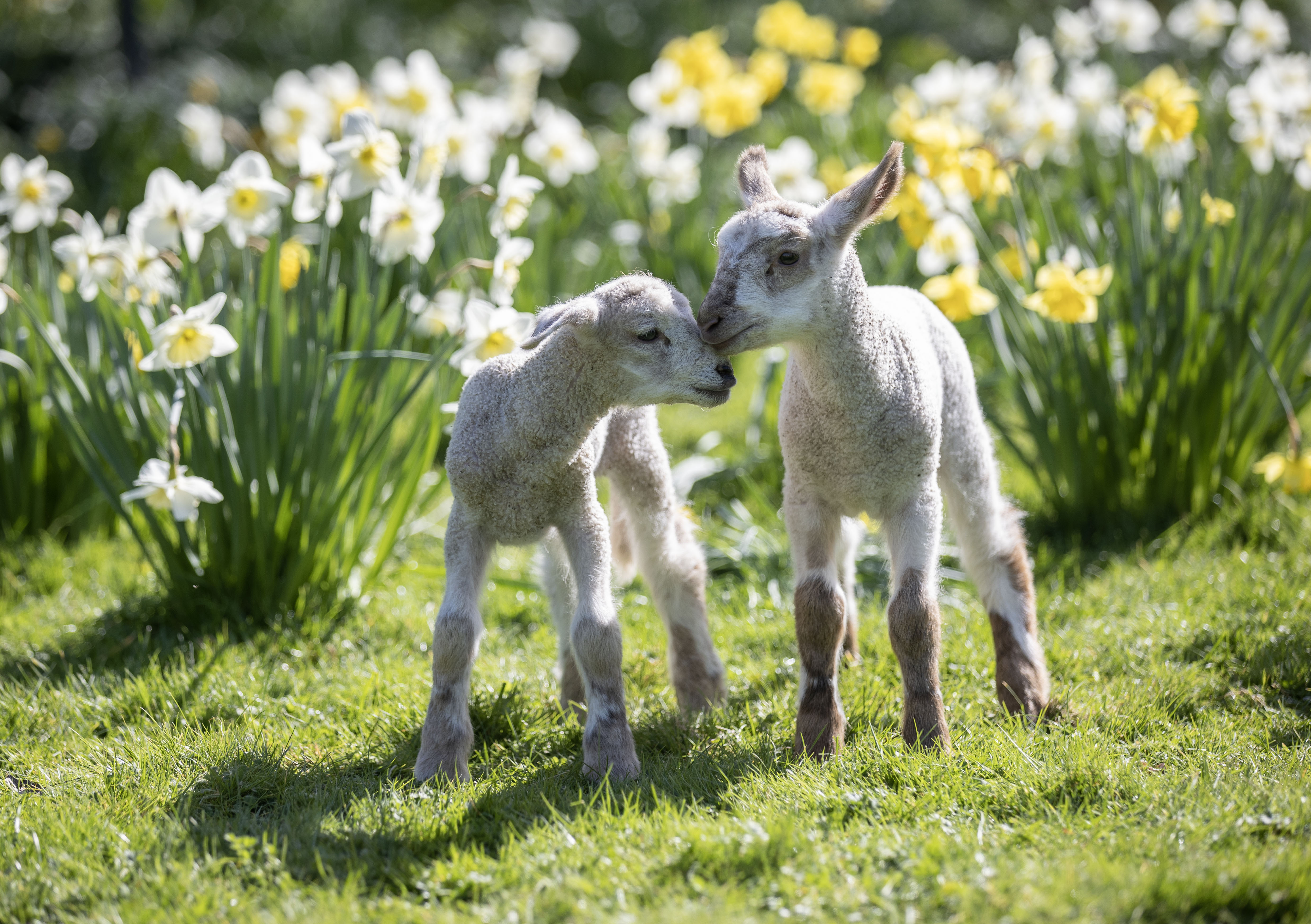 Spring lambs enjoy the sunshine at Coombes Farm, Lancing, West Sussex, United Kingdom on March 17, 2024. (Photo by Steve Reigate/The Times)