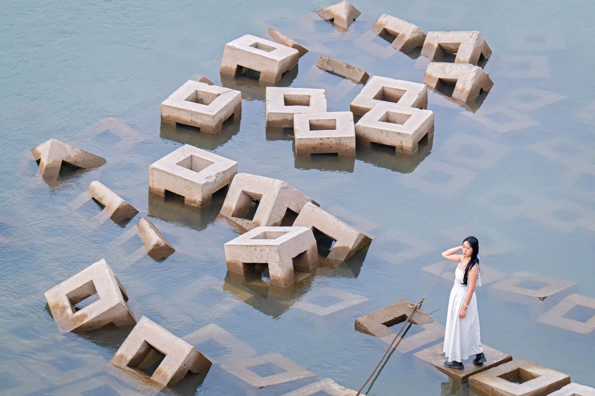 This photo taken on April 13, 2024 shows a woman standing on a breakwater in China's southwestern city of Chongqing. (Photo by AFP Photo/China Stringer Network)