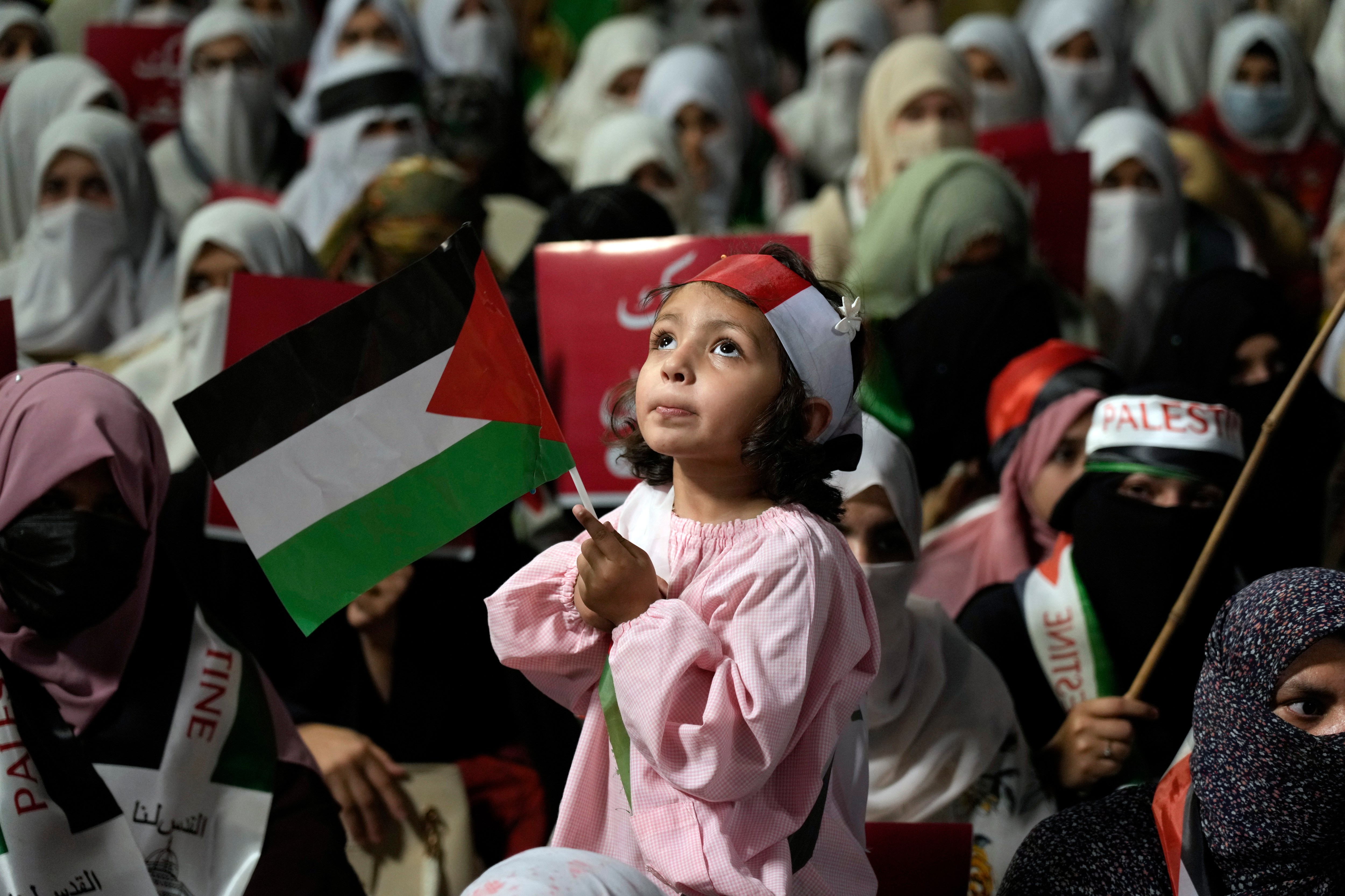Supporters of the religious party Jamaat-e-Islami take part in a rally against Israeli airstrikes on Gaza and to show solidarity with the Palestinians, in Lahore, Pakistan, Saturday, April 20, 2024. (Photo by K.M. Chaudary/AP Photo)