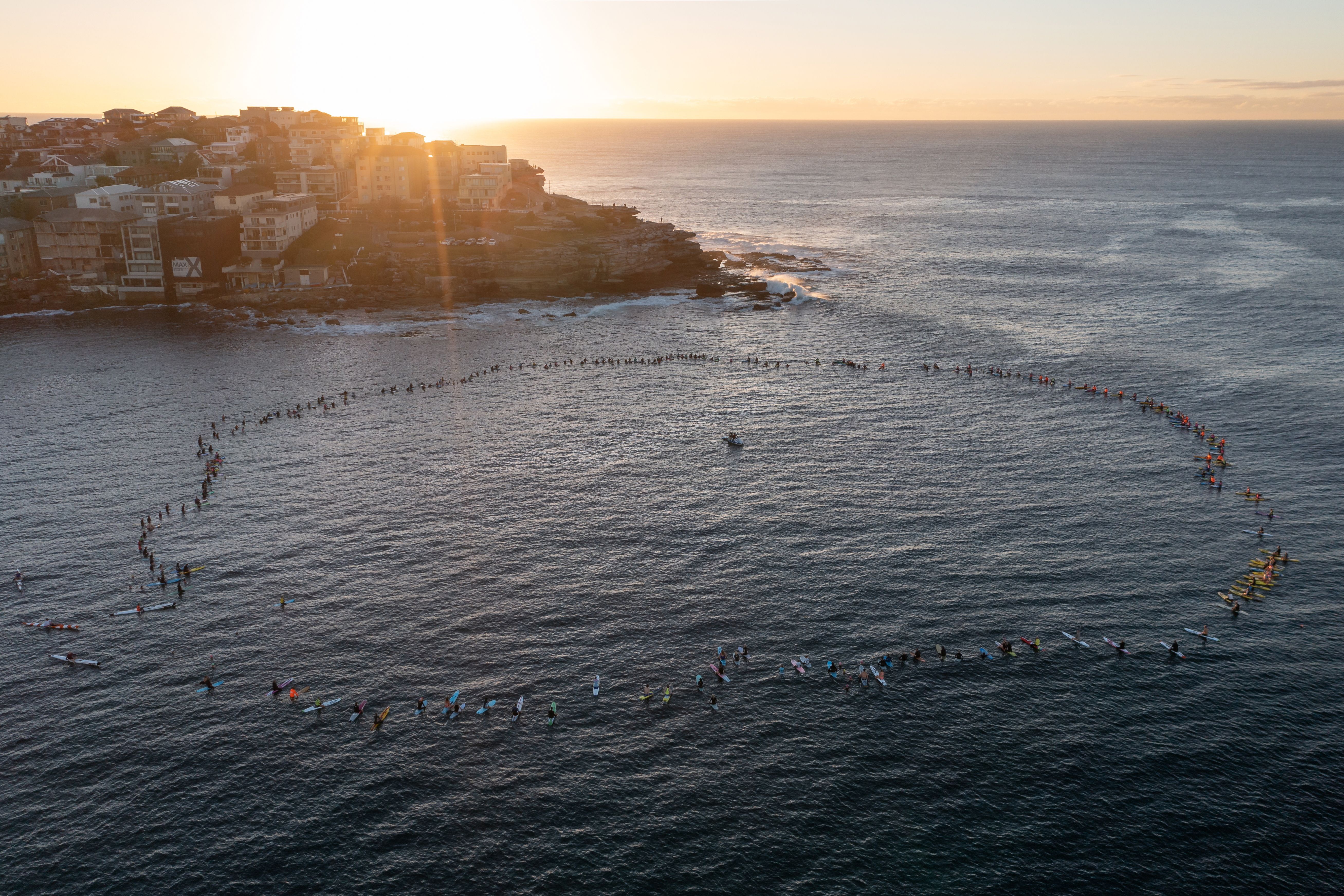 Members of the Bondi Board Riders Club, various local sporting clubs, and lifeguards participate in a paddle-out at Bondi Beach to honor and remember the victims of the Westfield Bondi Junction stabbings in Sydney, Australia, 23 April 2024. (Photo by Steven Saphore/EPA)