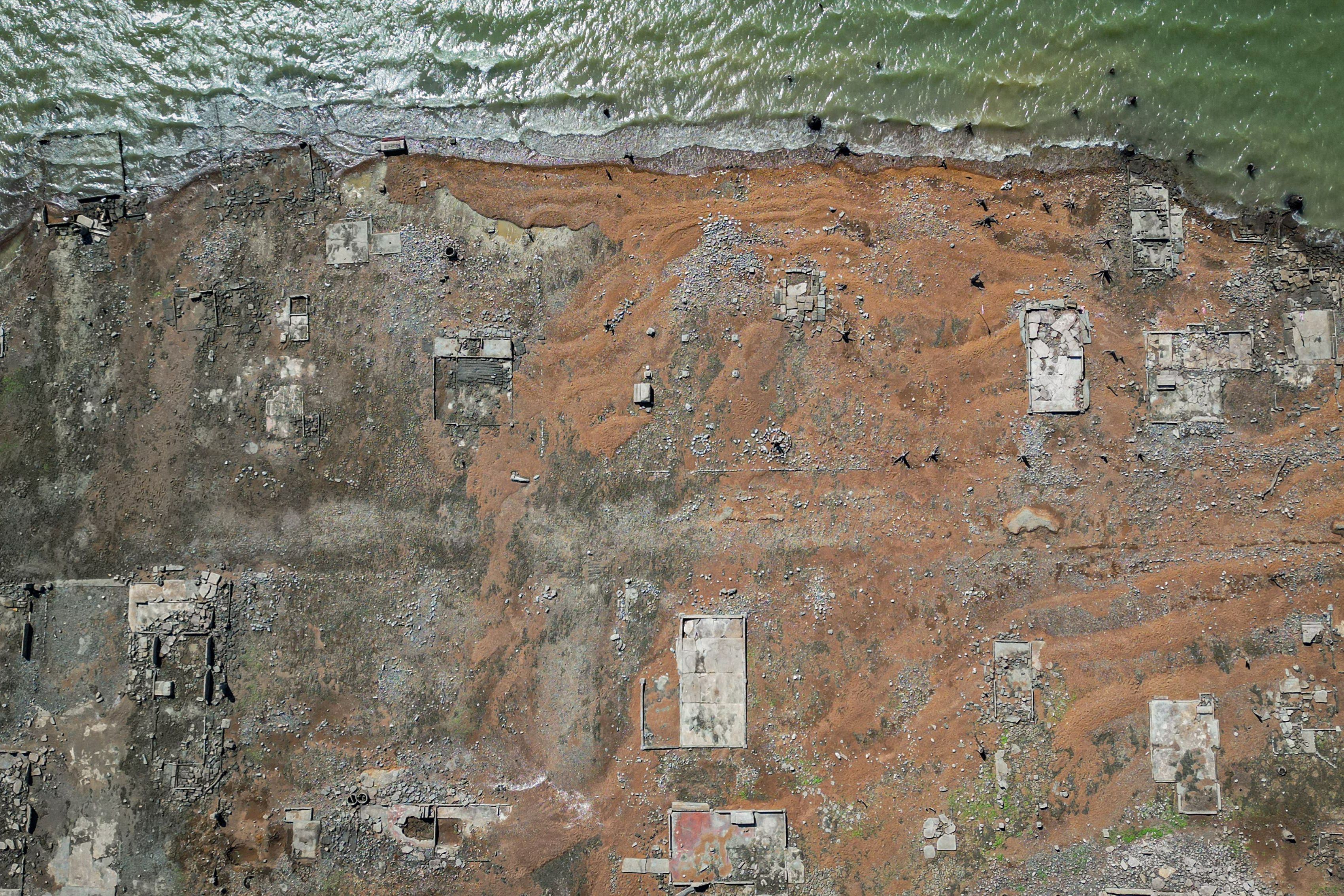 This aerial photo shows the old sunken town of Pantabangan in Nueva Ecija province on April 26, 2024. Remnants of the centuries-old town of Pantabangan reemerged in the northern Philippines after a dam]s water level dropped amid a drought that plagues many parts of the country. (Photo by Jam Sta Rosa/AFP Photo)