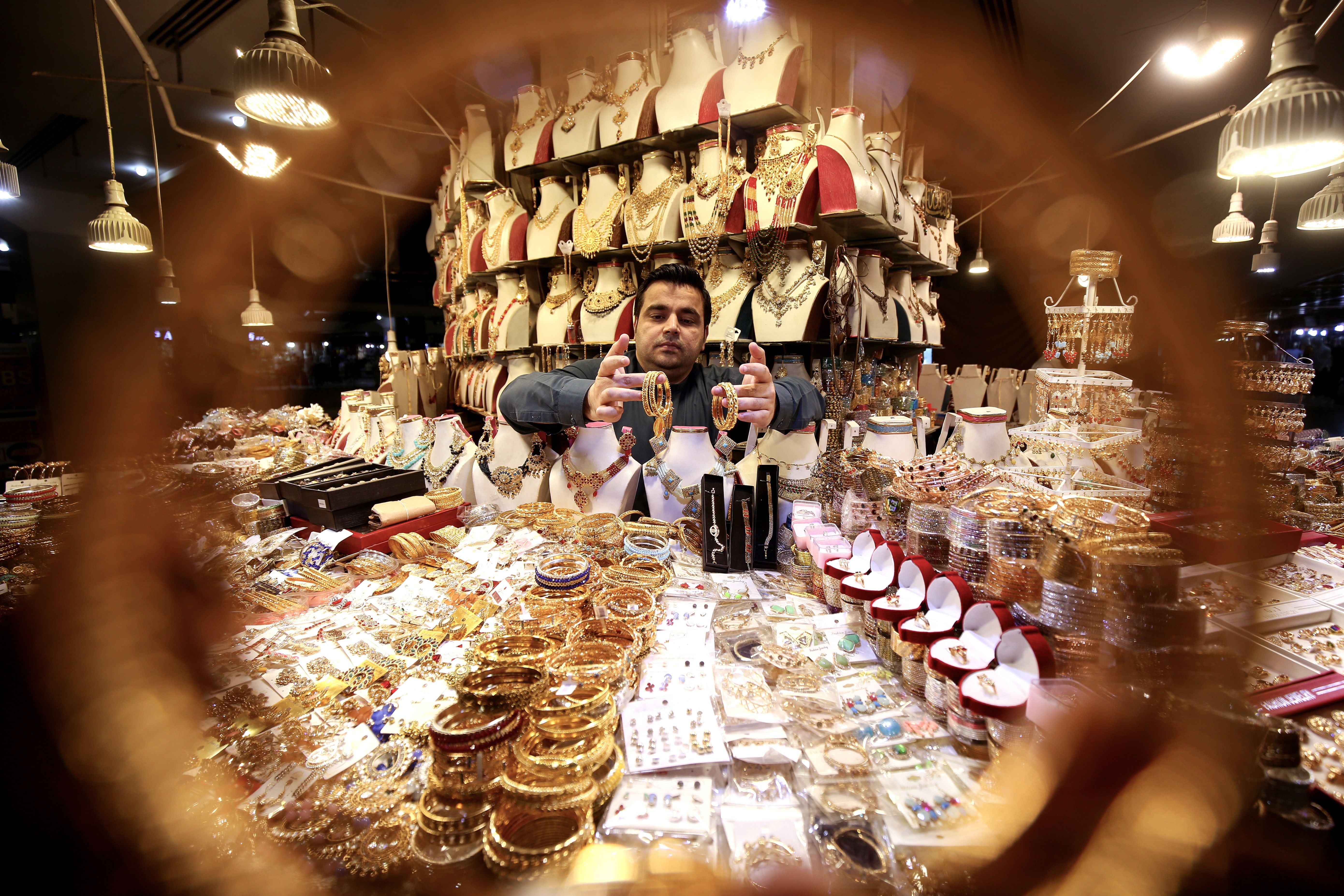 A Pakistani vendor sells bracelets at a jewelry store ahead of the Eid al-Fitr holiday, in Peshawar, Pakistan, 08 April 2024. The Islamic holiday of Eid al-Fitr marks the end of Ramadan and is celebrated during the first three days of Shawwal, the 10th month of the Islamic calendar. It is expected to begin on 10 or 11 April 2024, depending on the lunar calendar. The Muslims' holy month of Ramadan is the ninth month in the Islamic calendar and it is believed that the revelation of the first verse in the Koran was during its last 10 nights. It is celebrated yearly by praying during the night time and abstaining from eating, drinking, and sexual acts during the period between sunrise and sunset. It is also a time for socializing, mainly in the evening after breaking the fast and a shift of all activities to late in the day in most countries. (Photo by Arshad Arbab/EPA/EFE)