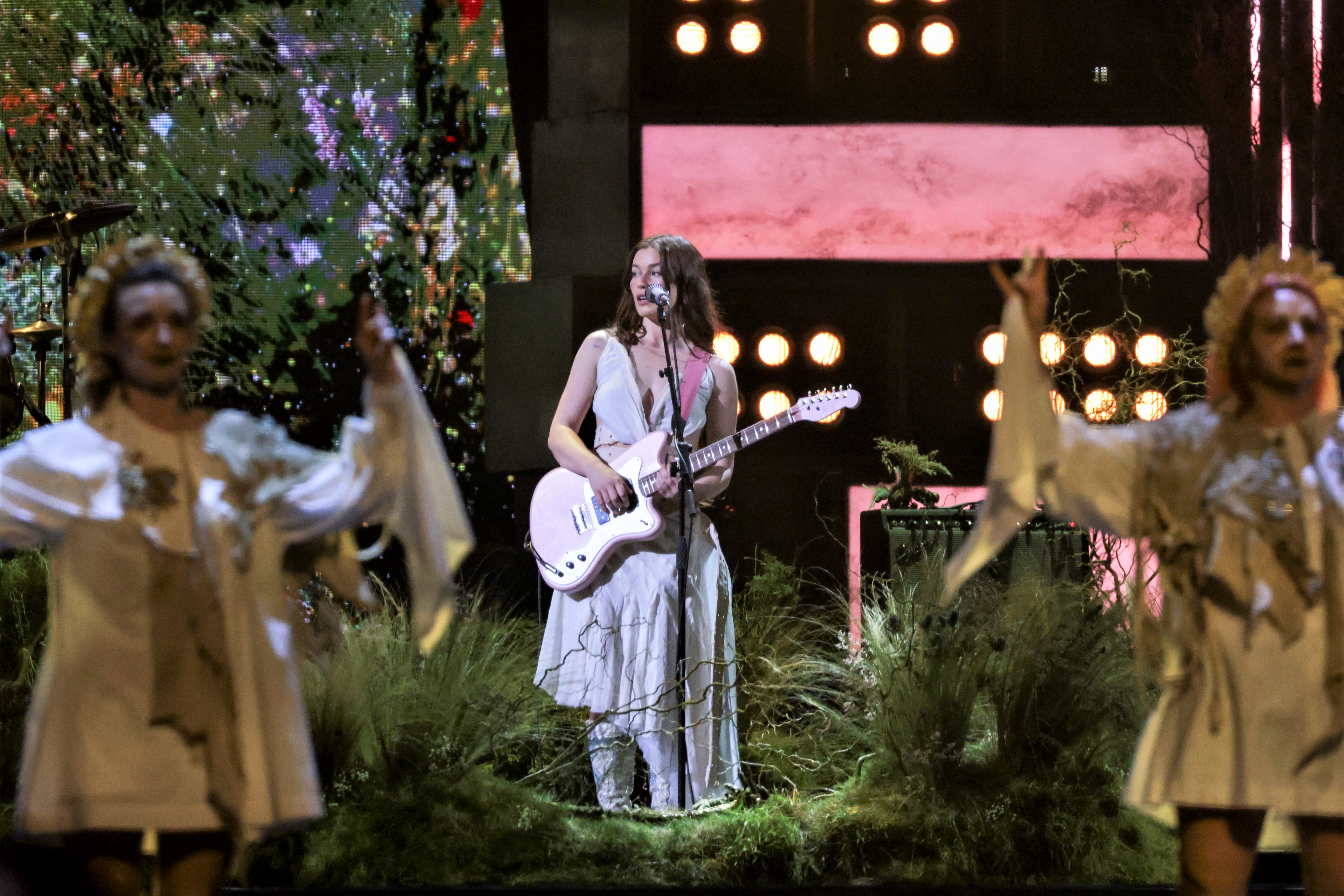 British indie rock band Wet Leg perform at the Brit Awards 2023 in London, Saturday, February 11, 2023. (Photo by Vianney Le Caer/Invision/AP Photo)