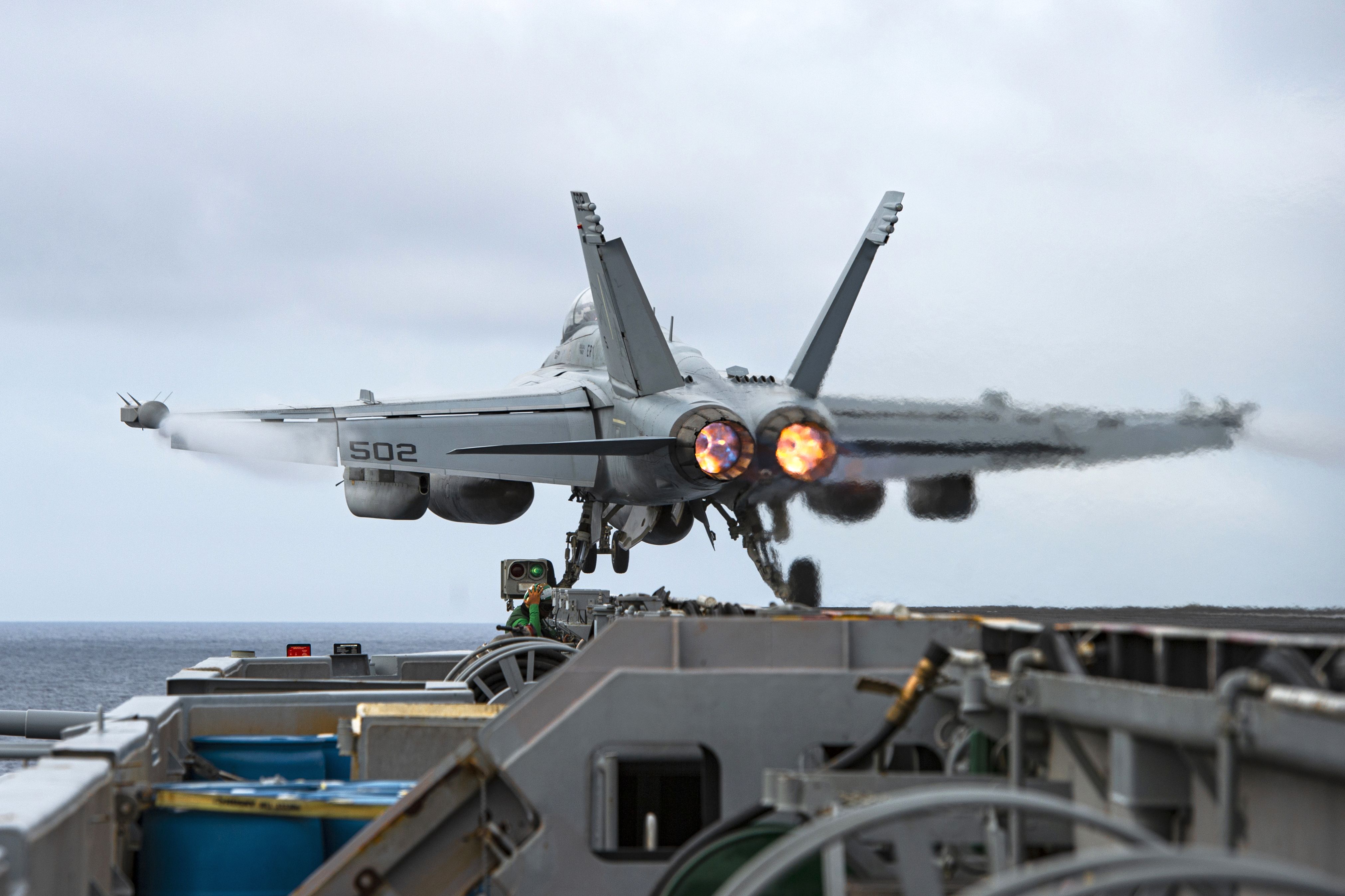 An E/A-18G Growler aircraft launches from the flight deck of the aircraft carrier USS Nimitz in the South China Sea, Sunday, February 12, 2023, as Nimitz in U.S. 7th Fleet was conducting operations. The 7th Fleet based in Japan said Sunday that the USS Nimitz aircraft carrier strike group and the 13th Marine Expeditionary Unit have been conducting “integrated expeditionary strike force operations” in the South China Sea. (Photo by Mass Communication Specialist 3rd Class Joseph Calabrese/U.S. Navy via AP Photo)