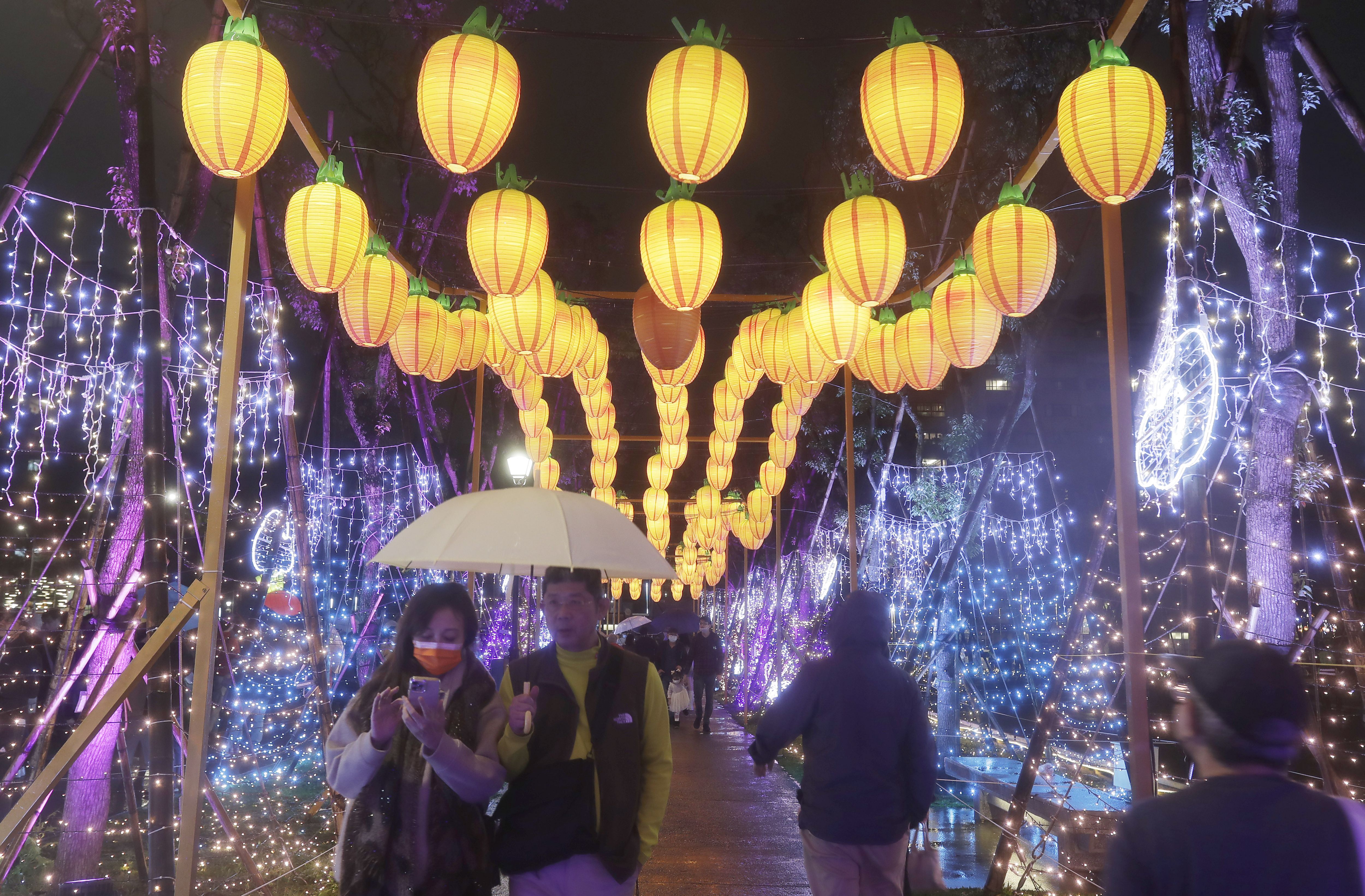 People look at lanterns for the Lantern Festival, marking the end of the Chinese lunar New Year celebrations in Taipei, Taiwan, Sunday, February 5, 2023. (Photo by Chiang Ying-ying/AP Photo)