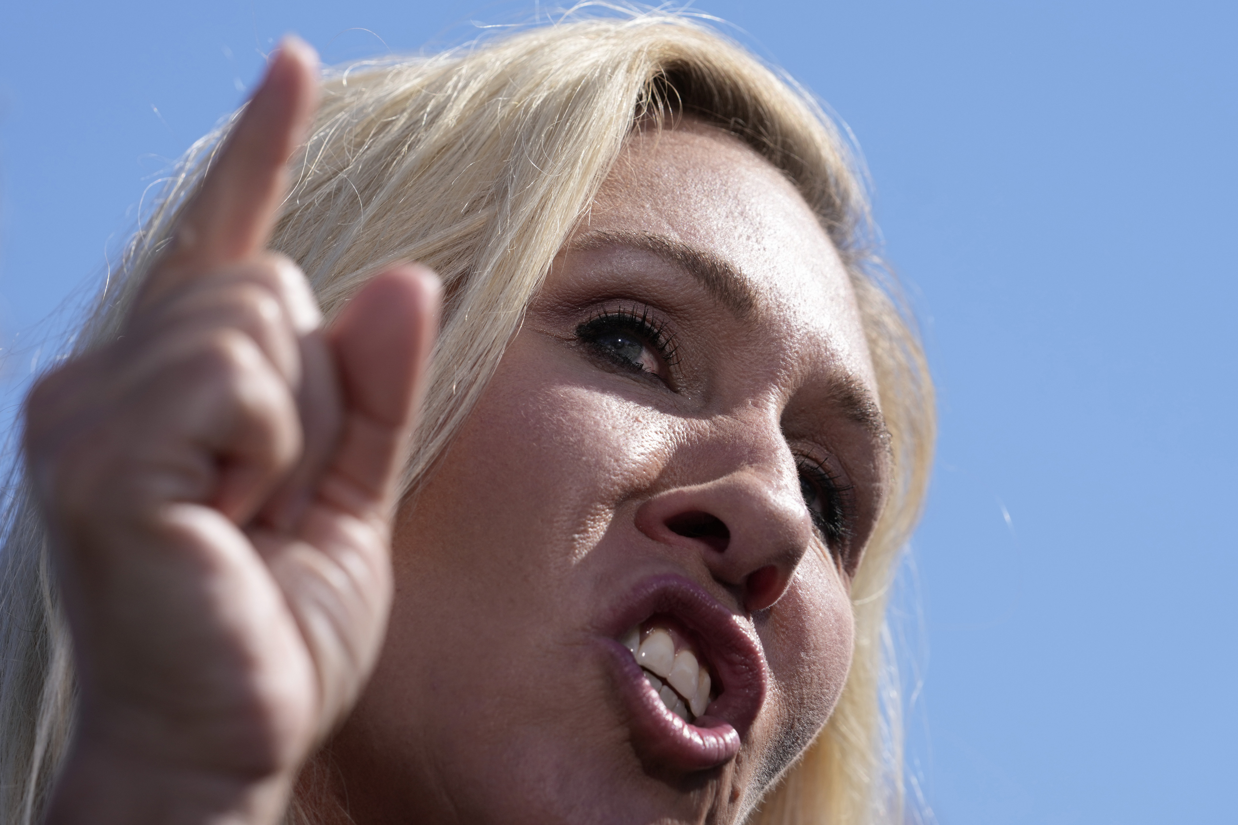 Rep. Marjorie Taylor Greene, R-Ga., says she'll call a vote on ousting House Speaker Mike Johnson, during a news conference at the Capitol in Washington, May 1, 2024. (Photo by J. Scott Applewhite/AP Photo)