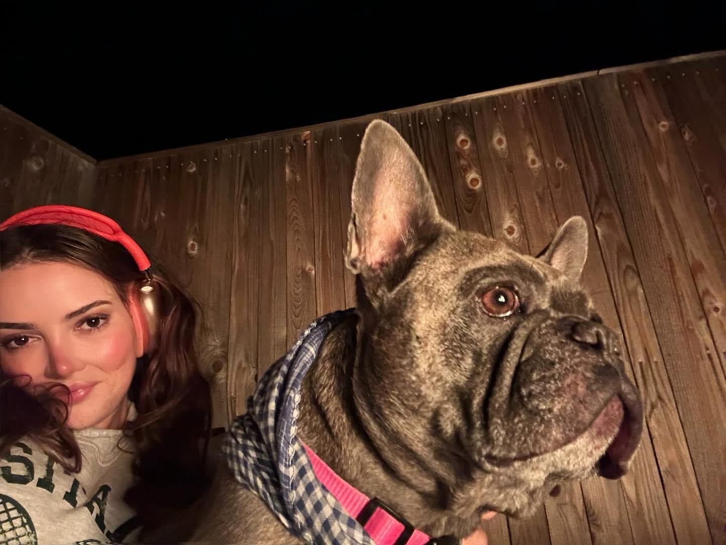 American actress Keleigh Teller snaps a selfie with her dog in the last decade of April 2024. (Photo by keleighteller/Instagram)