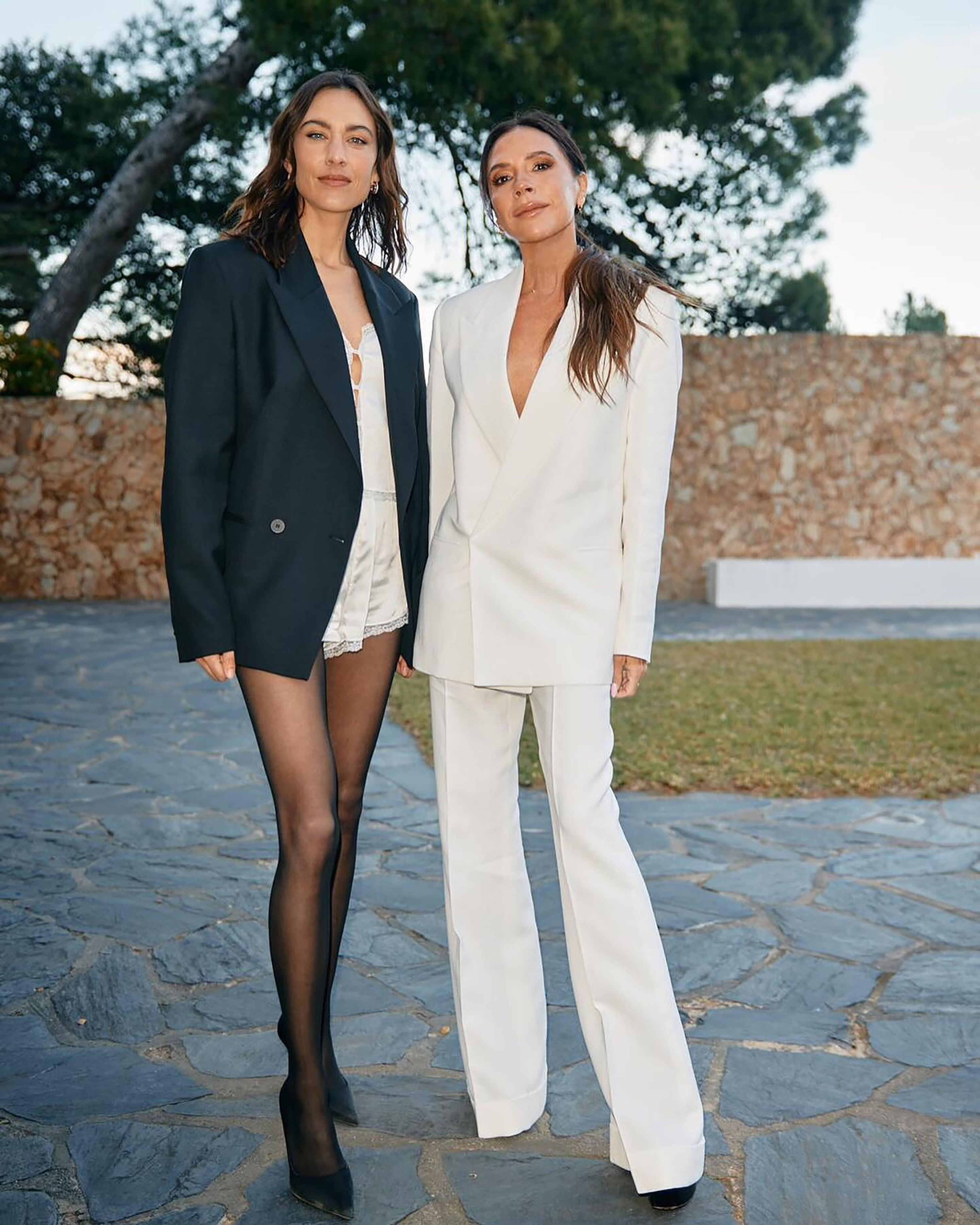 British television presenter and model Alexa Chung (L) posed beside English fashion designer, singer, and television personality Victoria Beckham in Barcelona in the last decade of April 2024. (Photo by Instagram)