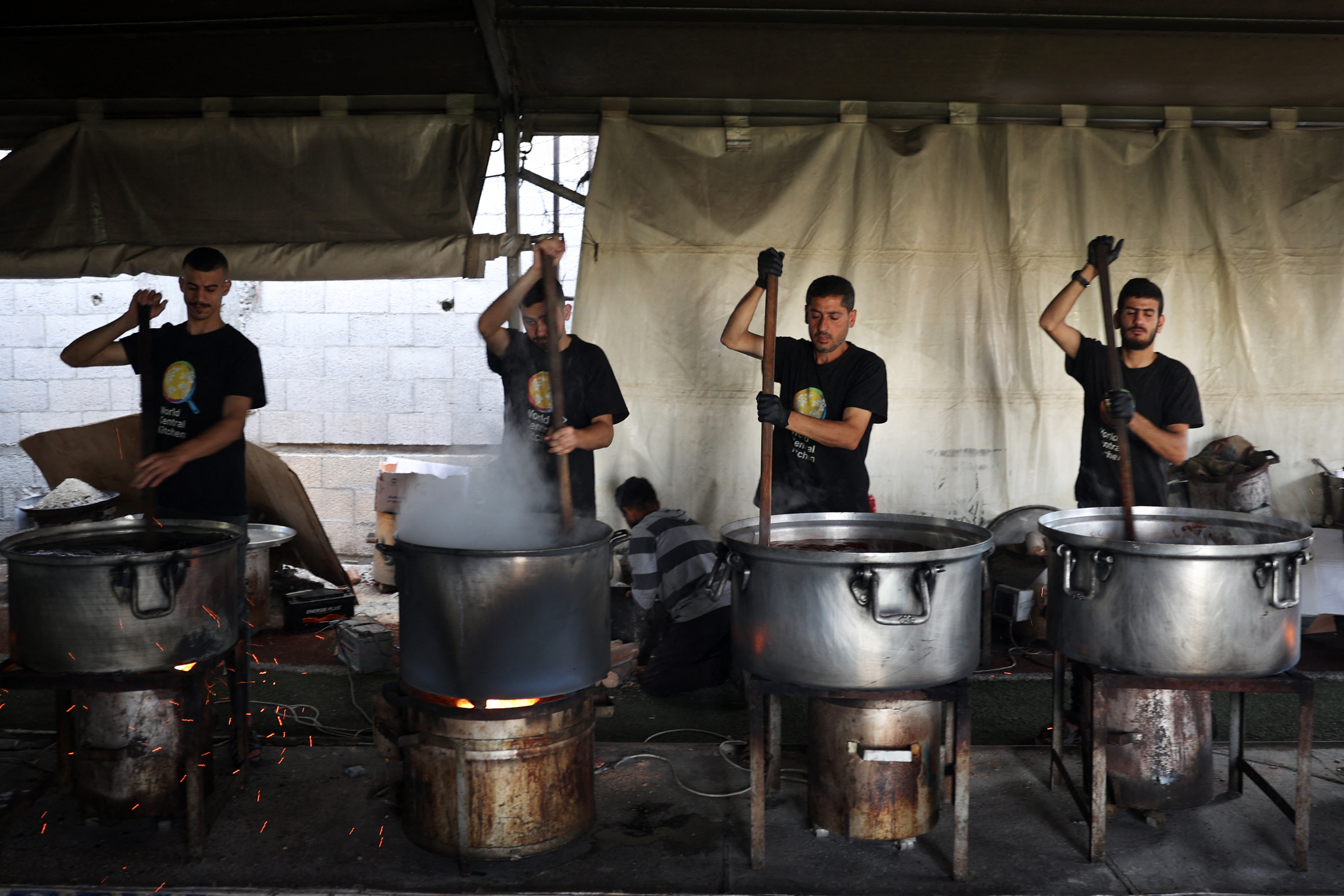 Local volunteers of the World Central Kitchen cook meals to be distributed to needy Palestinians in Rafah in the southern Gaza Strip on May 3, 2024, amid the ongoing conflict between Israel and the Hamas movement. (Photo by AFP Photo/Stringer)