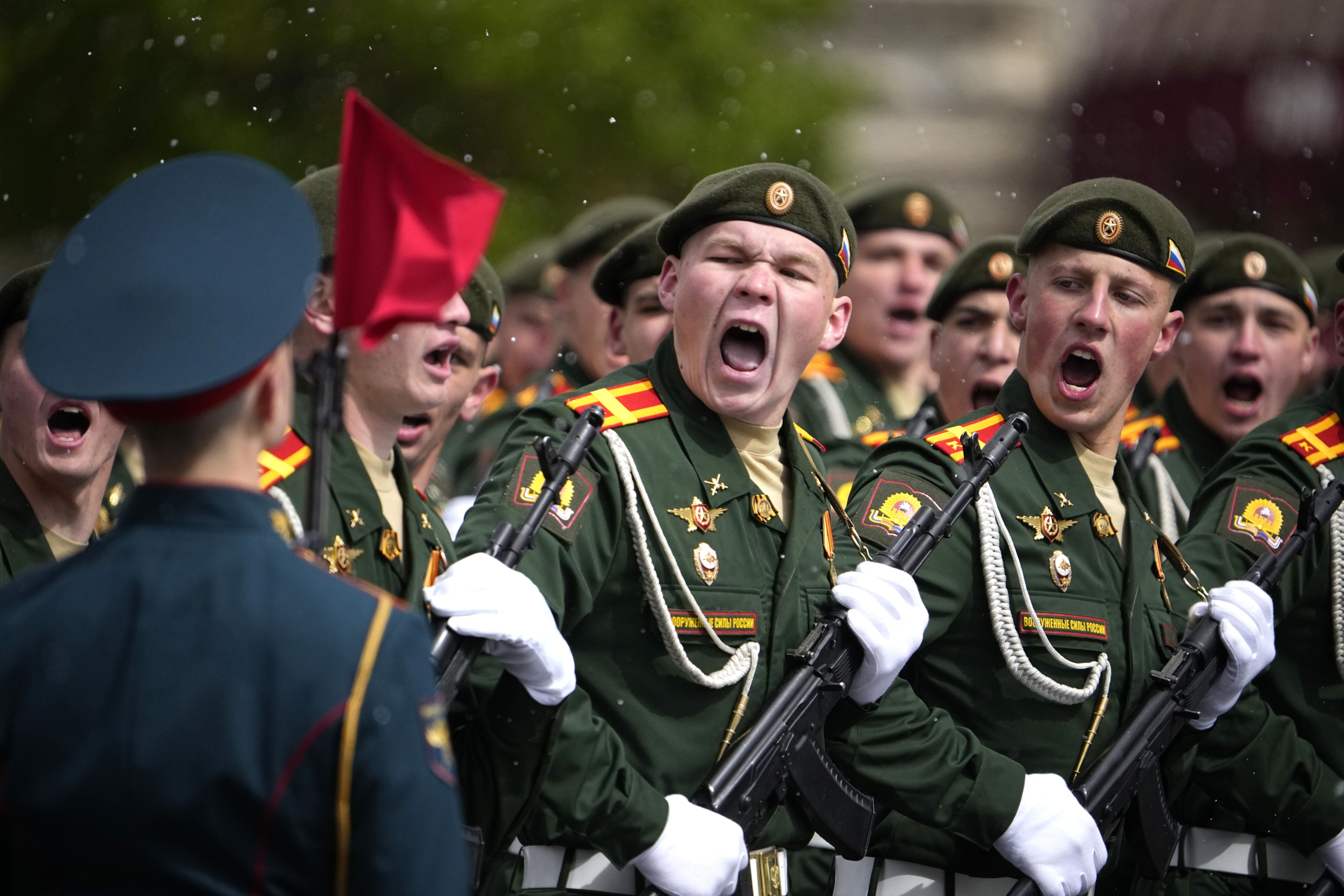 Russian servicemen march during the Victory Day military parade in Moscow, Russia, Thursday, May 9, 2024, marking the 79th anniversary of the end of World War II. (Photo by Alexander Zemlianichenko/AP Photo)