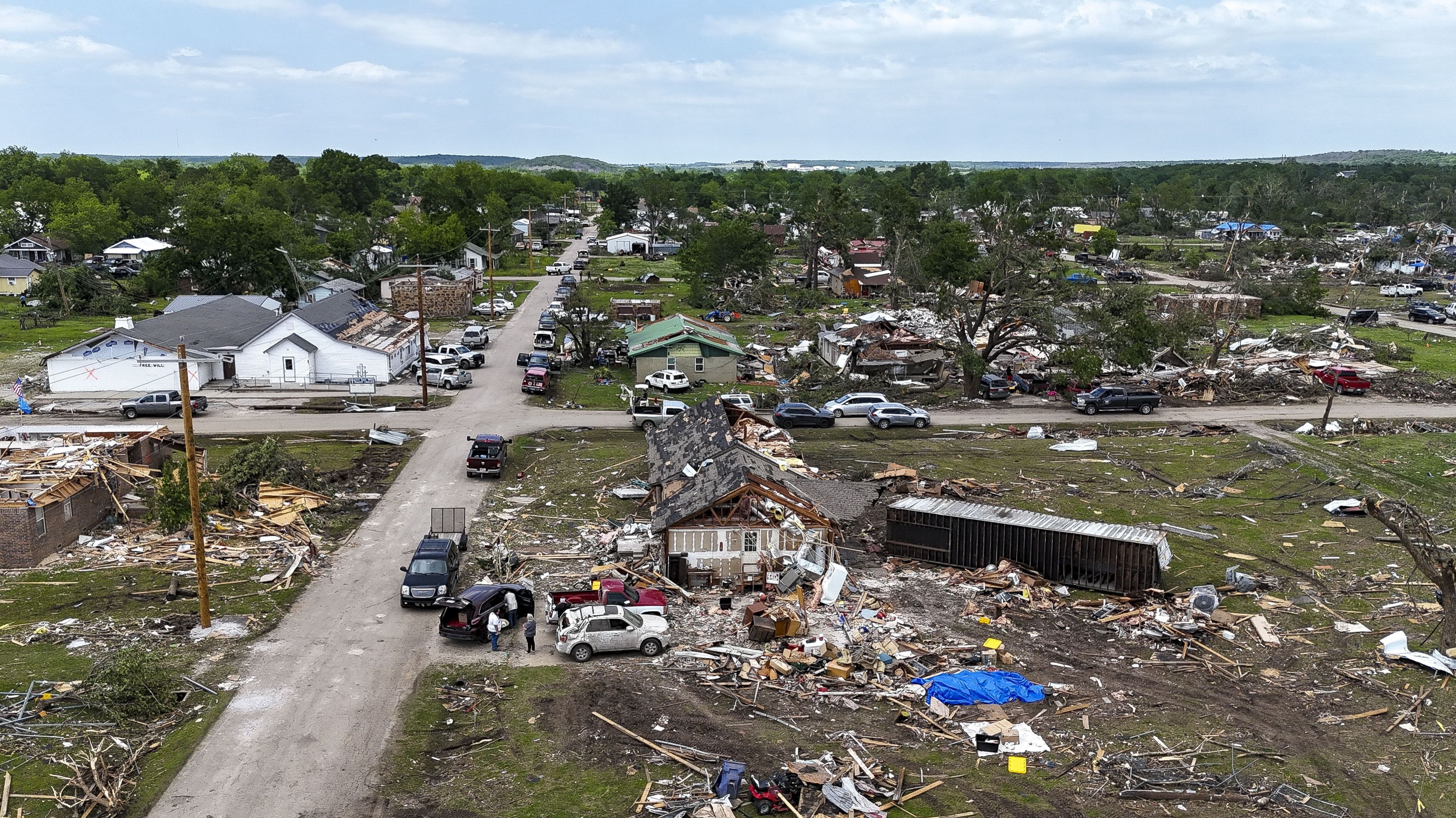 An aerial view of homes that got destroyed by a tornado that hit in Barnsdall, Oklahoma USA, 08 May 2024. According to Barnsdall Mayor Johnny Kelley, one person was dead while one man was missing, after a tornado that occurred on 06 May. (Photo by Adam Davis/EPA)