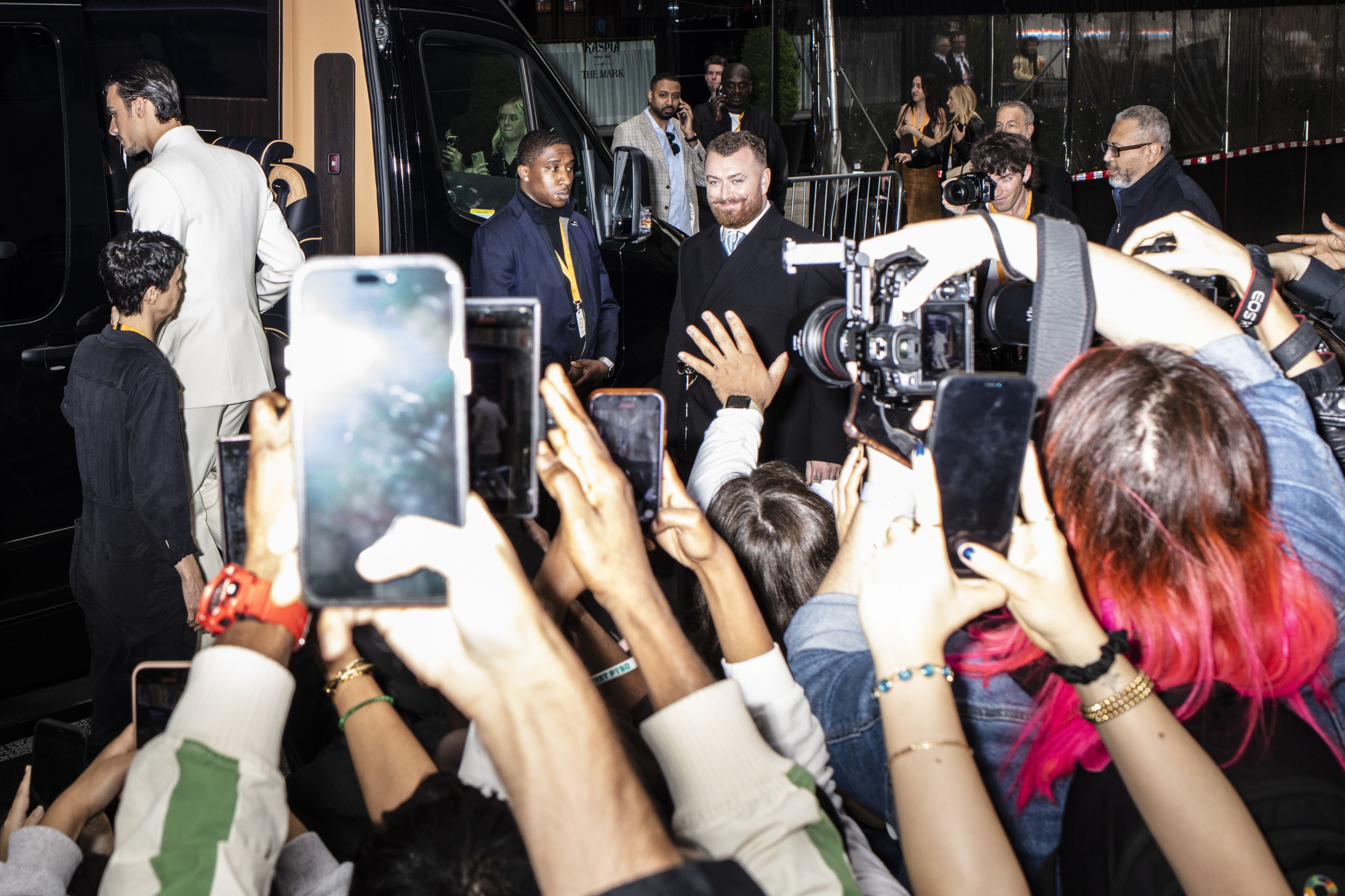 English singer-songwriter Sam Smith heads toward his limousine outside The Mark Hotel on his way to The Met Gala in New York, N.Y., on May 6, 2024. (Photo by Bryan Anselm For The Washington Post)