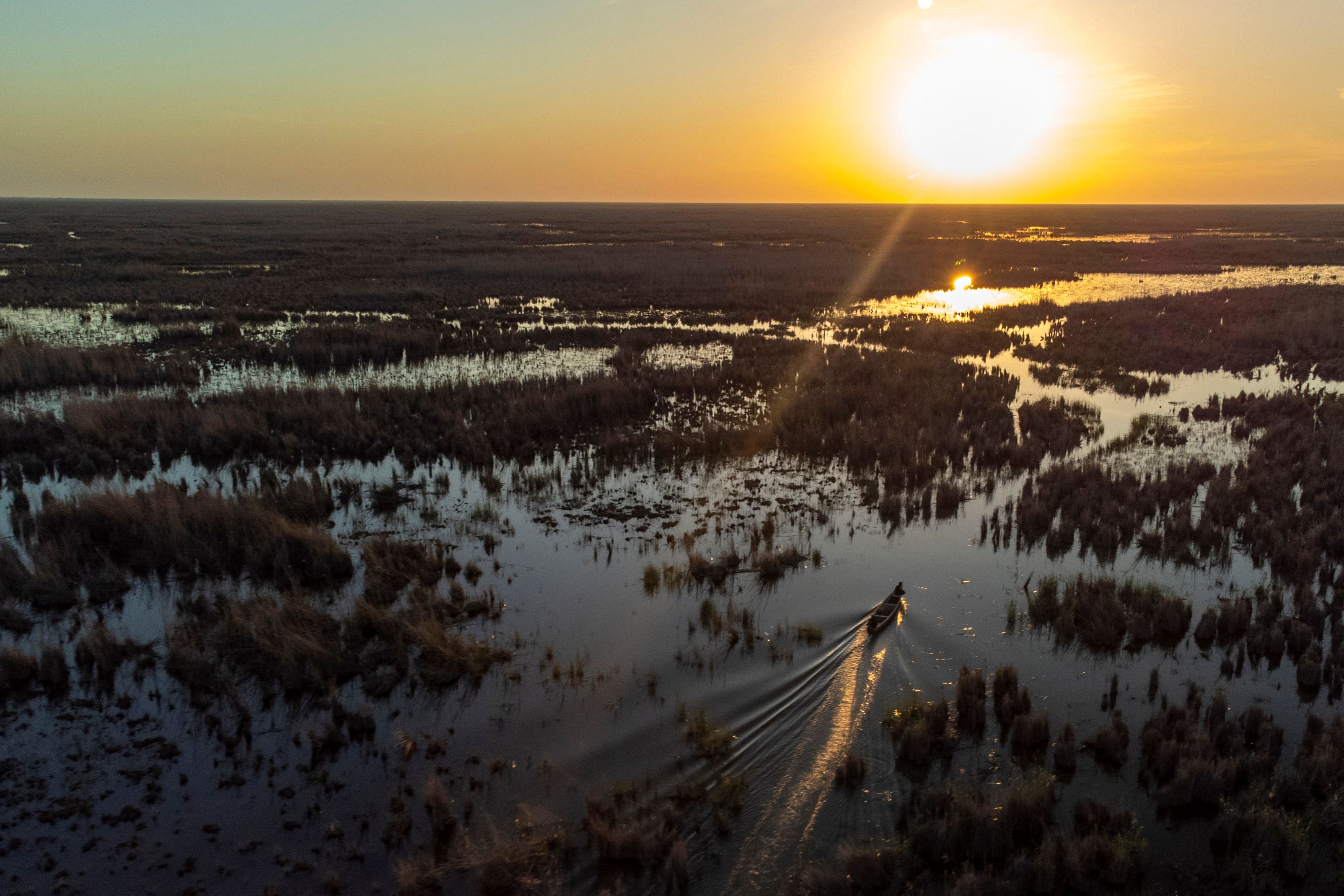 Raad al-Ghalibi, an inhabitant of the Chibayesh marshland in Iraq's southern Ahwar area of Dhi Qar province, sails home on his boat to prepare the Iftar fast-breaking meal on April 2, 2024, during the Muslim holy month of Ramadan. Ghalibi lived in the marshland with his family and raised buffalos, but because of the drought in recent years, he sent his family to live in a more hospitable area in the country and remained in the marshland with his brother to look after his cattle. (Photo by Asaad Niazi/AFP Photo)