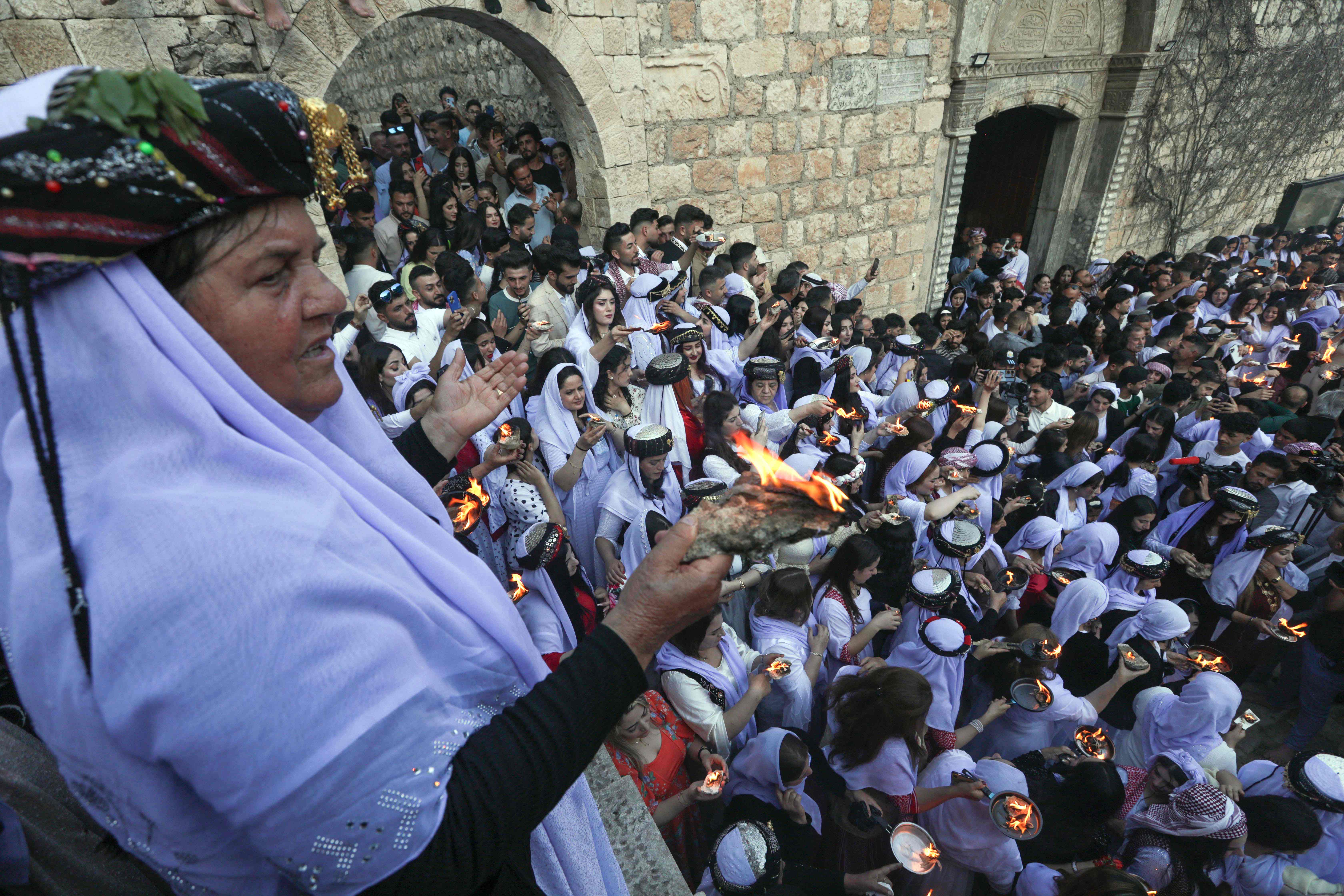 Iraqi Yazidis light candles outside the Temple of Lalish in a valley near the Kurdish city of Dohuk on April 16, 2024, during a ceremony marking the Yazidi New Year. The Yazidis, who number about 1.6 million, commemorate the arrival of light into the world during the new year celebrations. (Photo by Safin Hamid/AFP Photo)