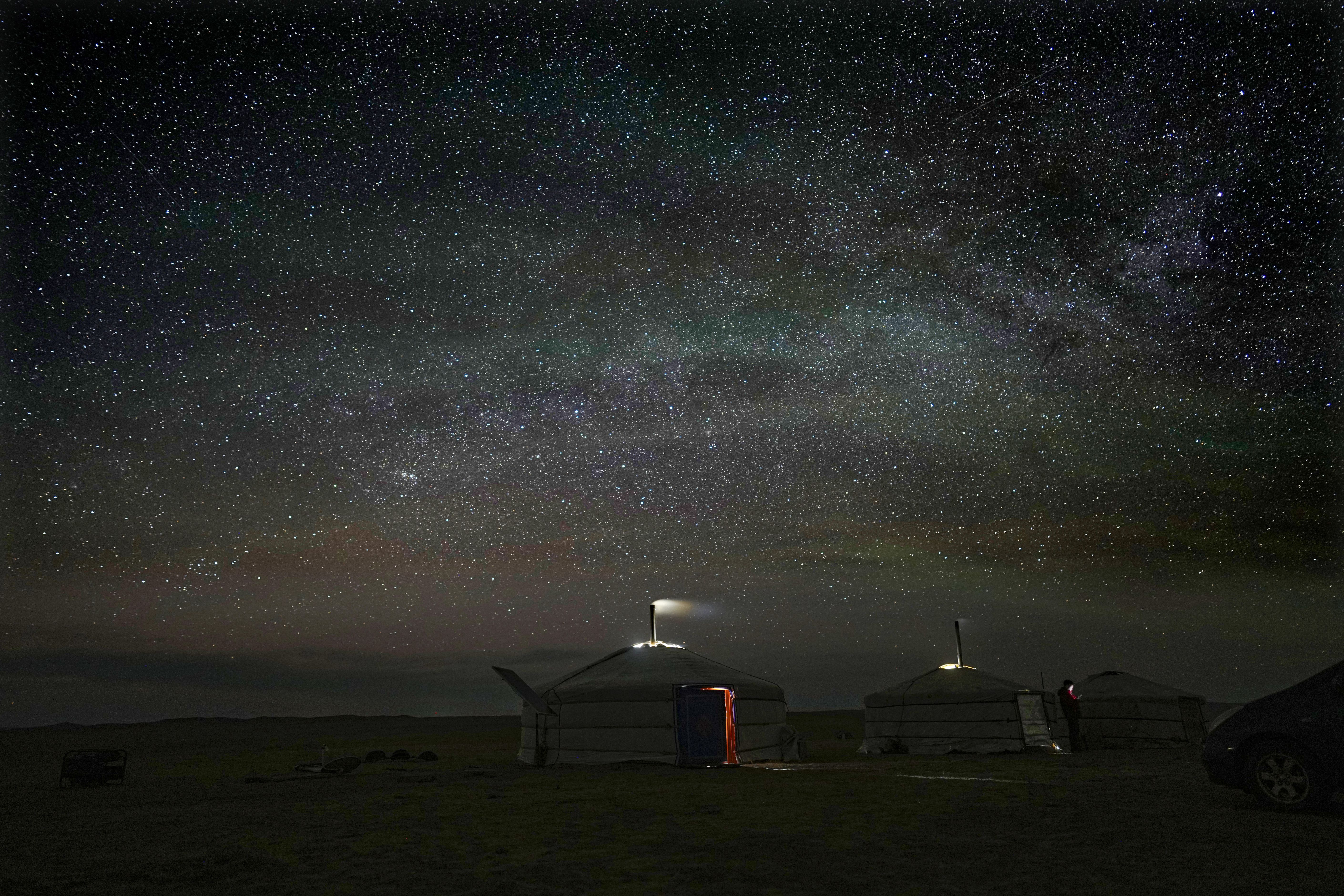 Stars light up the night sky over Lkhaebum's ger, a portable, round tent insulated with sheepskin, in the remote Munkh-Khaan region of the Sukhbaatar district, in southeast Mongolia, Tuesday, May 16, 2023. (Photo by Manish Swarup/AP Photo)