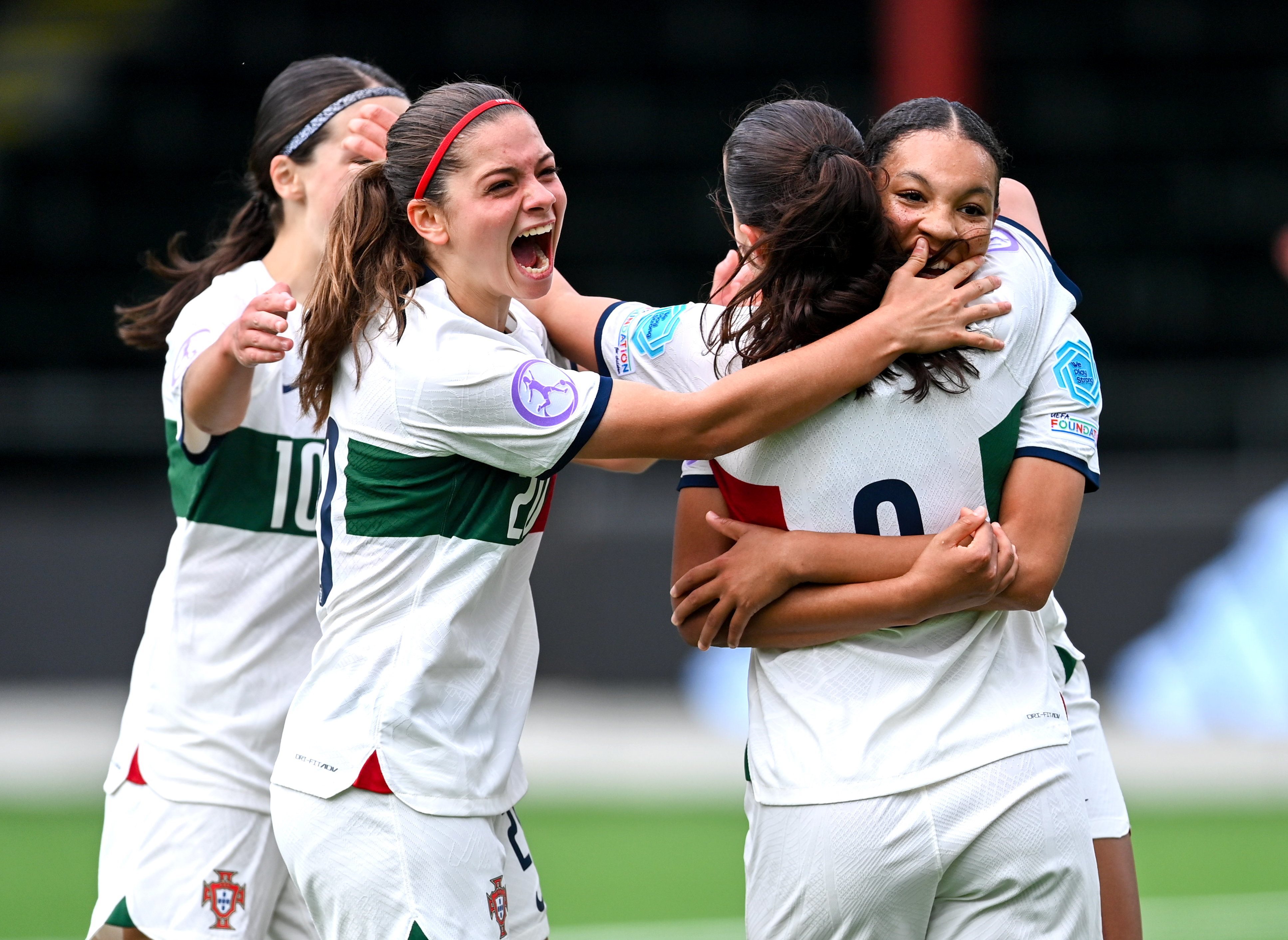 Portugal players celebrate during Women's Euro 2025 Qualifier after the match Malta v Portugal at Centenary Stadium in Ta' Qali, Malta on April 9, 2024. (Photo by FPF)