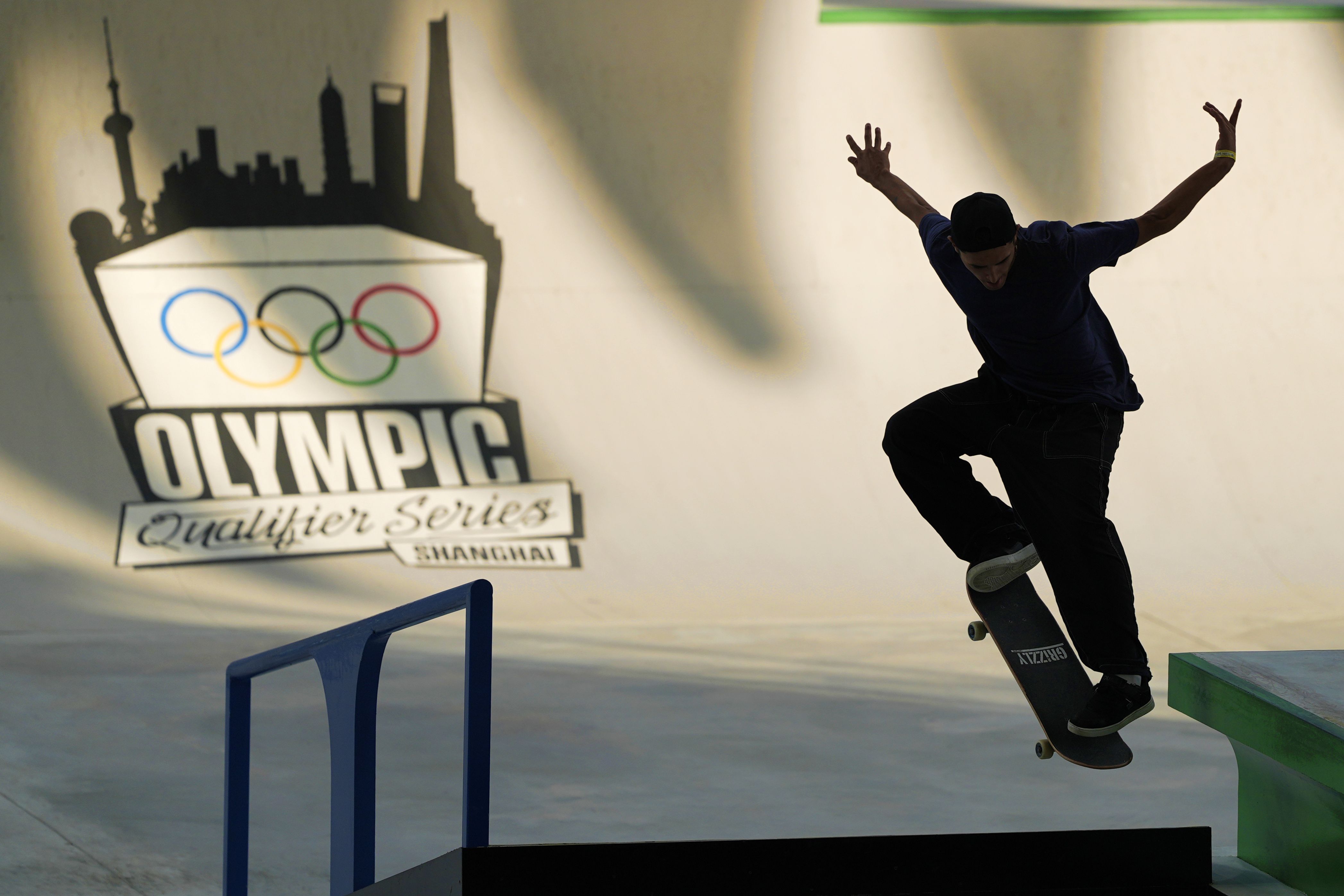 Argentina's Mauro Iglesias competes in the Skateboarding Men's Street Preliminaries for the 2024 Olympic Qualifier Series held in Shanghai, Thursday, May 16, 2024. (Photo by Ng Han Guan/AP Photo)