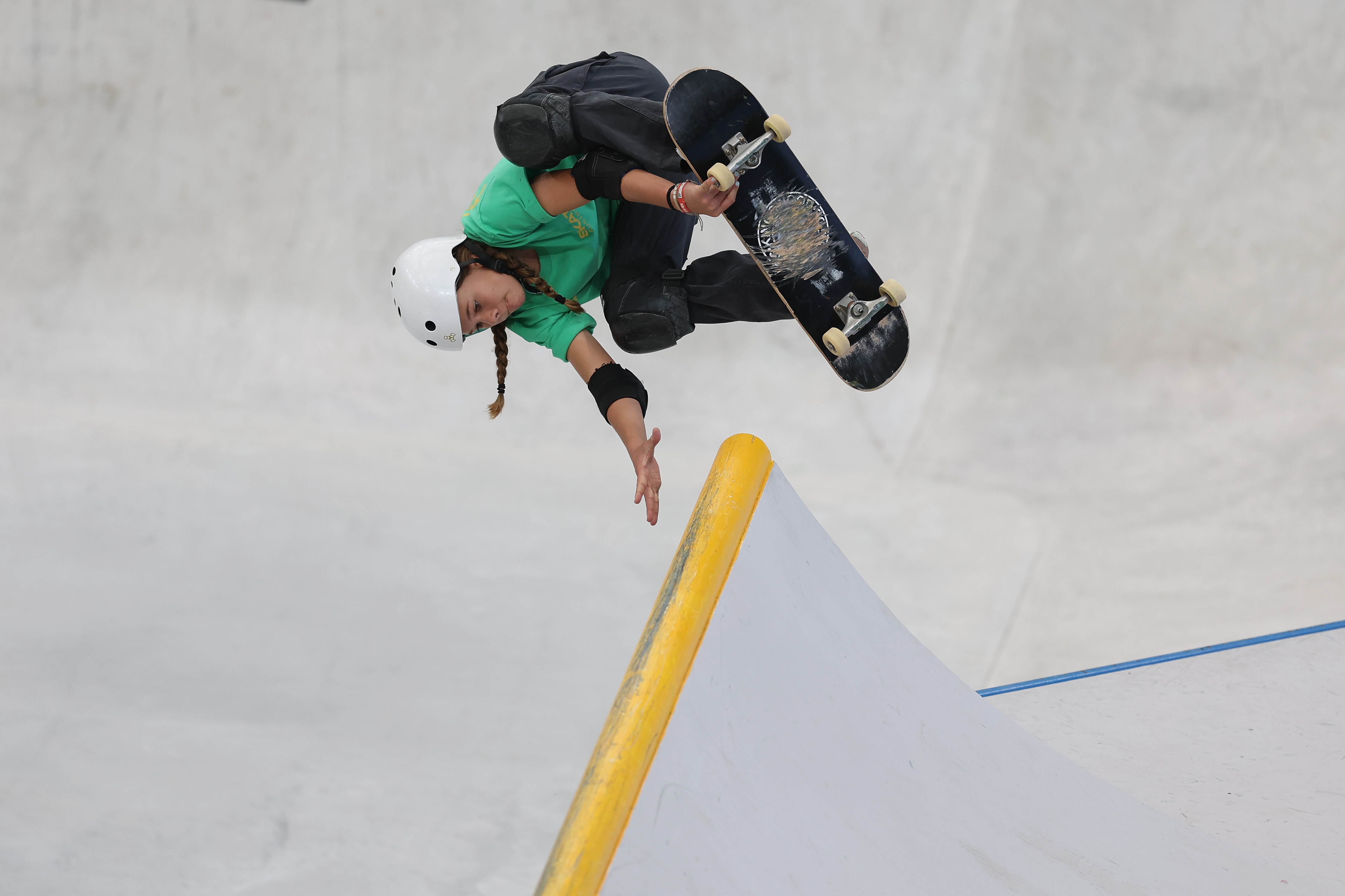 Coco Crafter of Australia competes during the Women's Park Prelims Heat 1 of the skateboarding competition on day one of the Olympic Qualifier Series on May 16, 2024 in Shanghai, China. (Photo by Lintao Zhang/Getty Images)