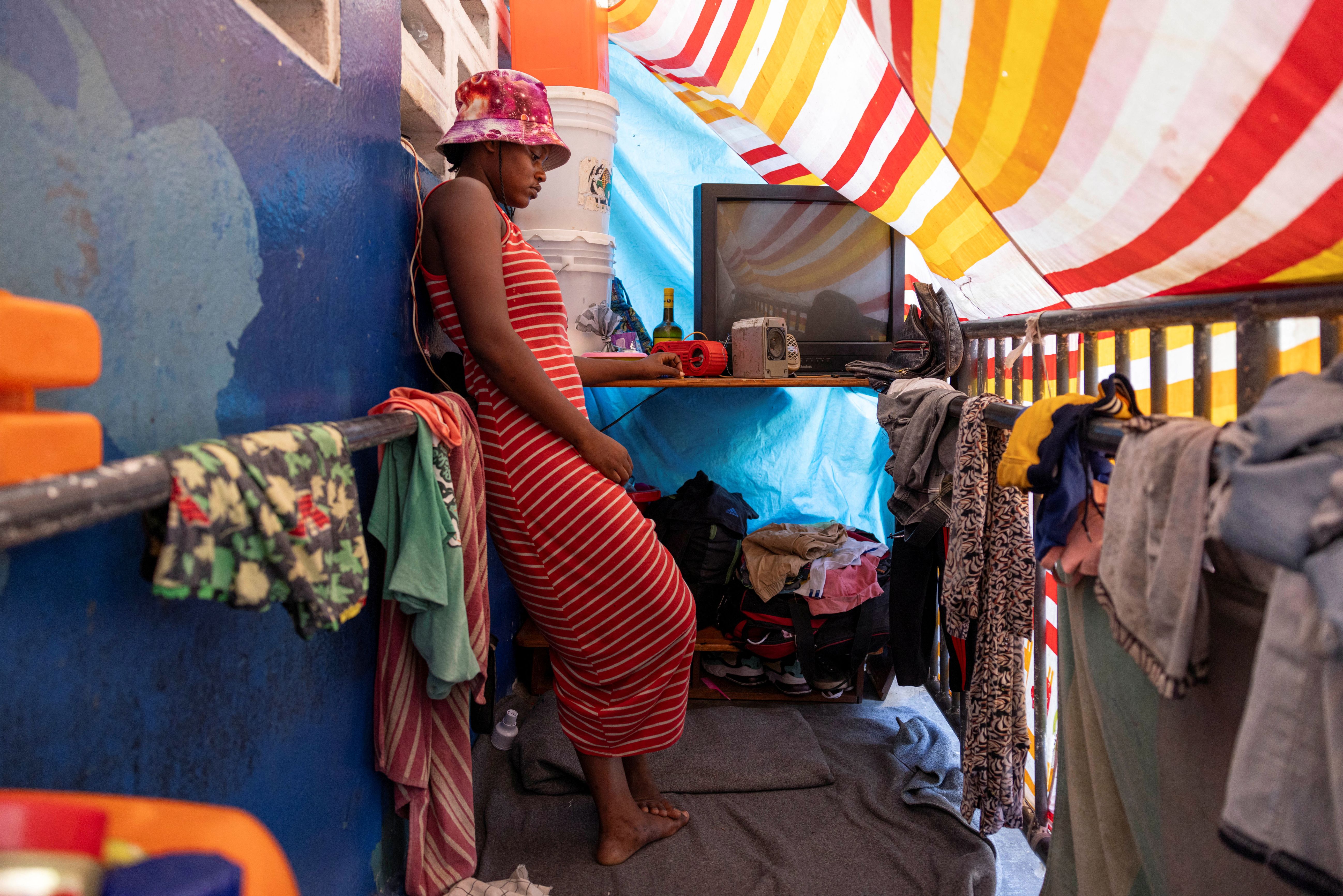 Simon Juliette, 18, listens to the radio at a makeshift tent at the Antenor Firmin high school transformed into a shelter, where people live in poor conditions, in Port-au-Prince, Haiti on May 1, 2024. (Photo by Ricardo Arduengo/Reuters)
