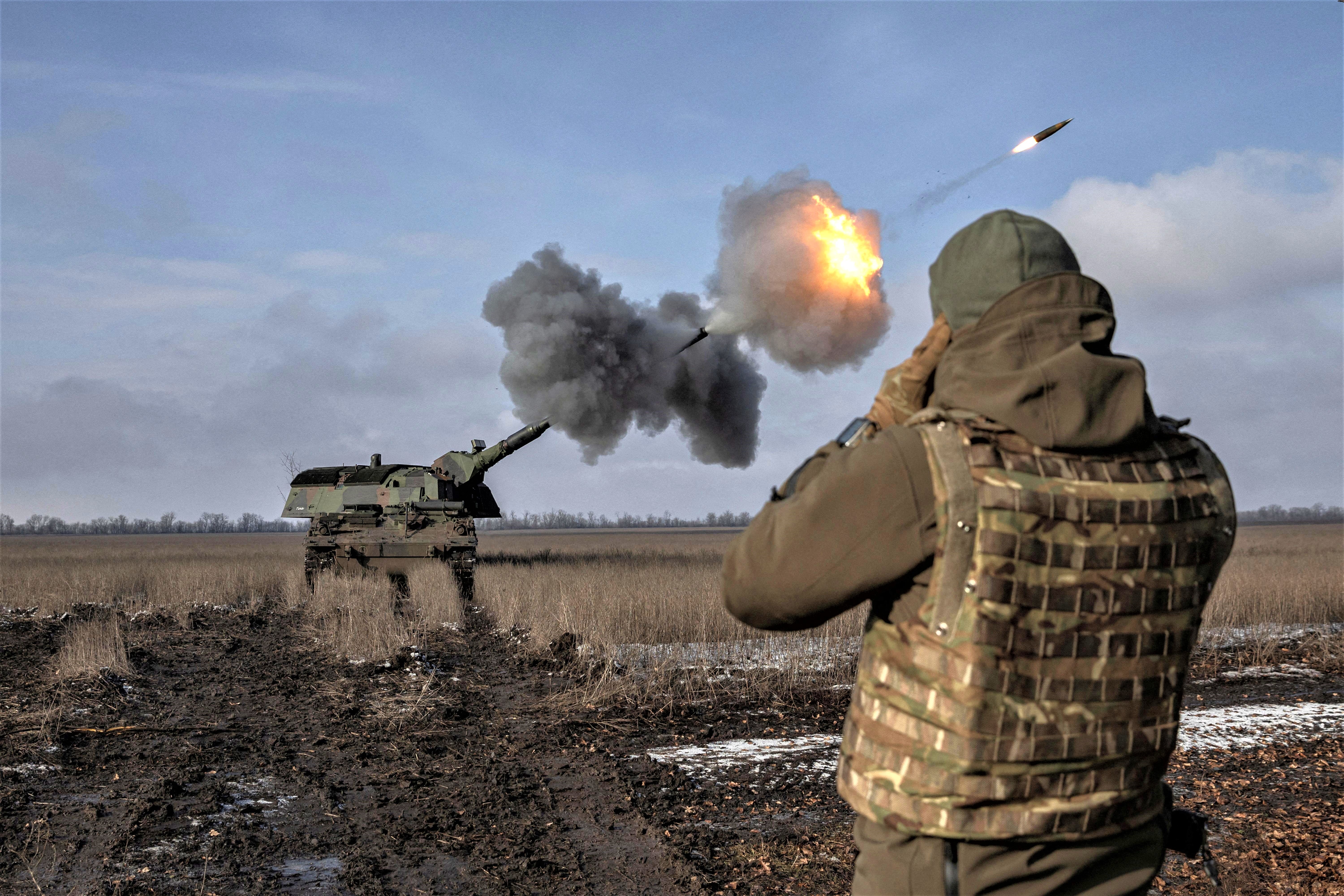 Ukrainian army from the 43rd Heavy Artillery Brigade fire the German howitzer Panzerhaubitze 2000, called Tina by the unit, amid Russia's attack on Ukraine, near Bahmut, in Donetsk region, Ukraine on February 5, 2023. (Photo by Marko Djurica/Reuters)
