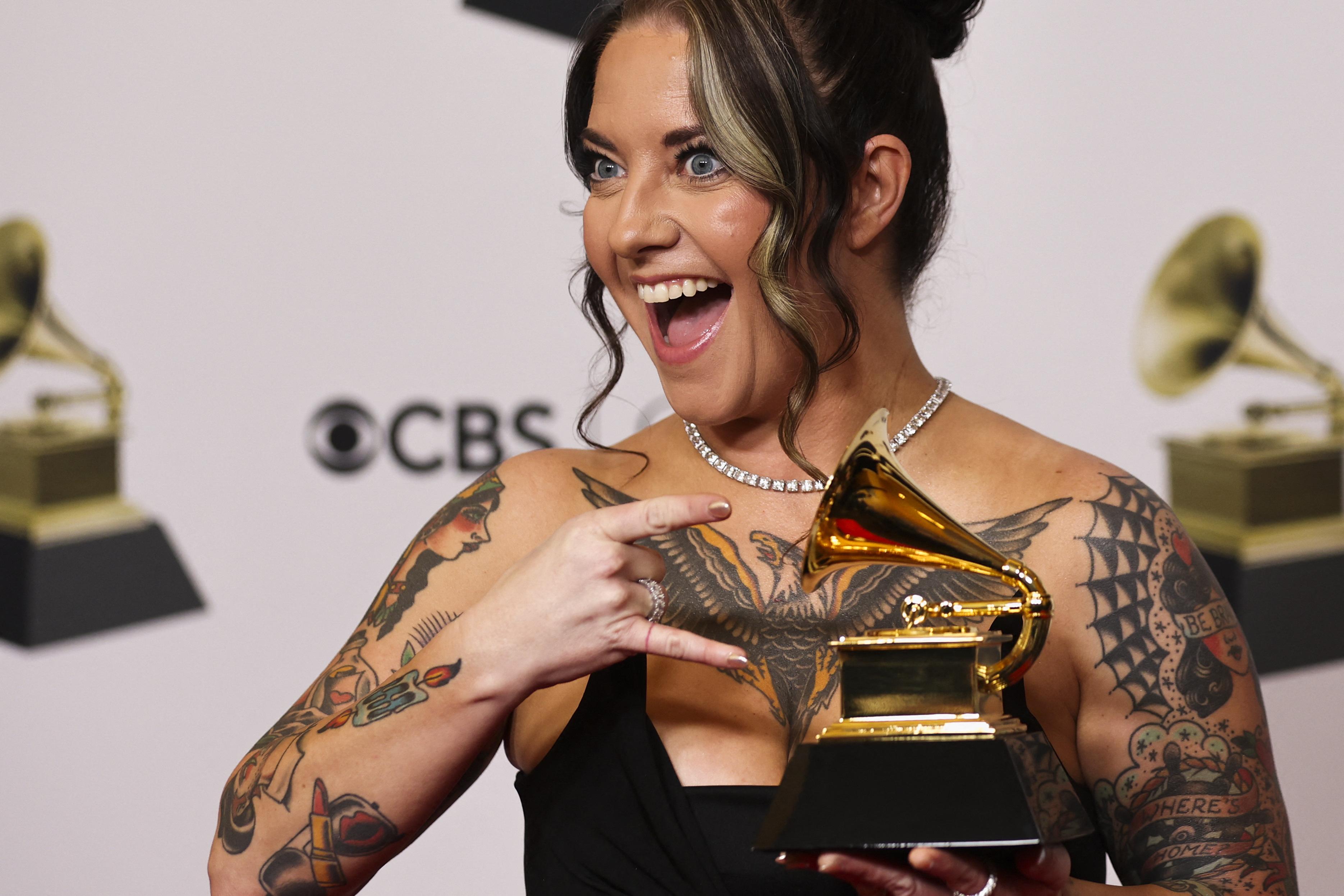 American country music singer–songwriter Ashley McBryde poses with the Grammy for Best Country Duo/Group Performance for “Never Wanted to Be That Girl” during the 65th Annual Grammy Awards in Los Angeles, California, U.S., February 5, 2023. (Photo by Mike Blake/Reuters)