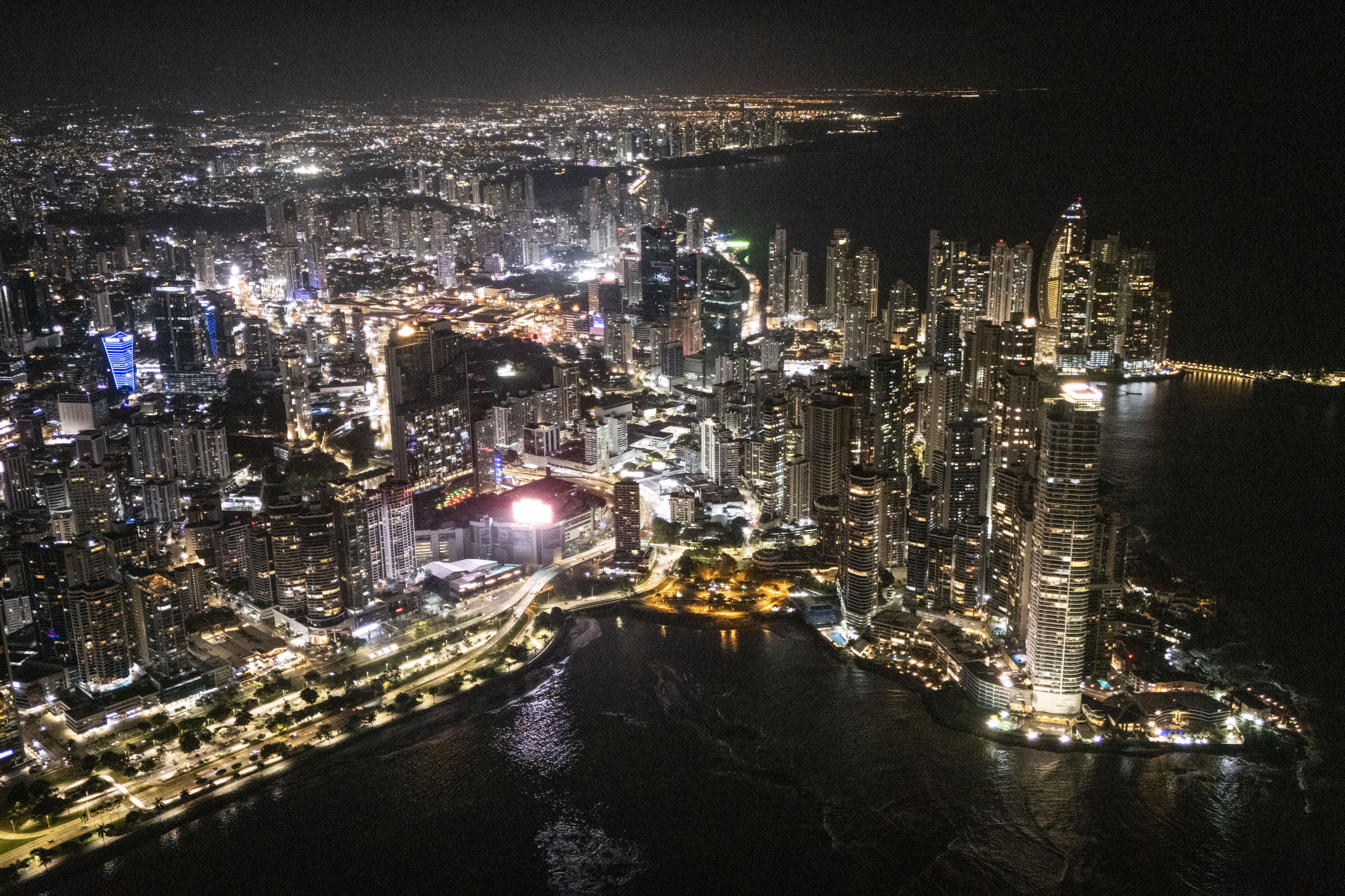 An overhead night view of Panama City, May 1, 2024. Panamanians will elect a new president on Sunday, May 5th. (Photo by Matias Delacroix/AP Photo)
