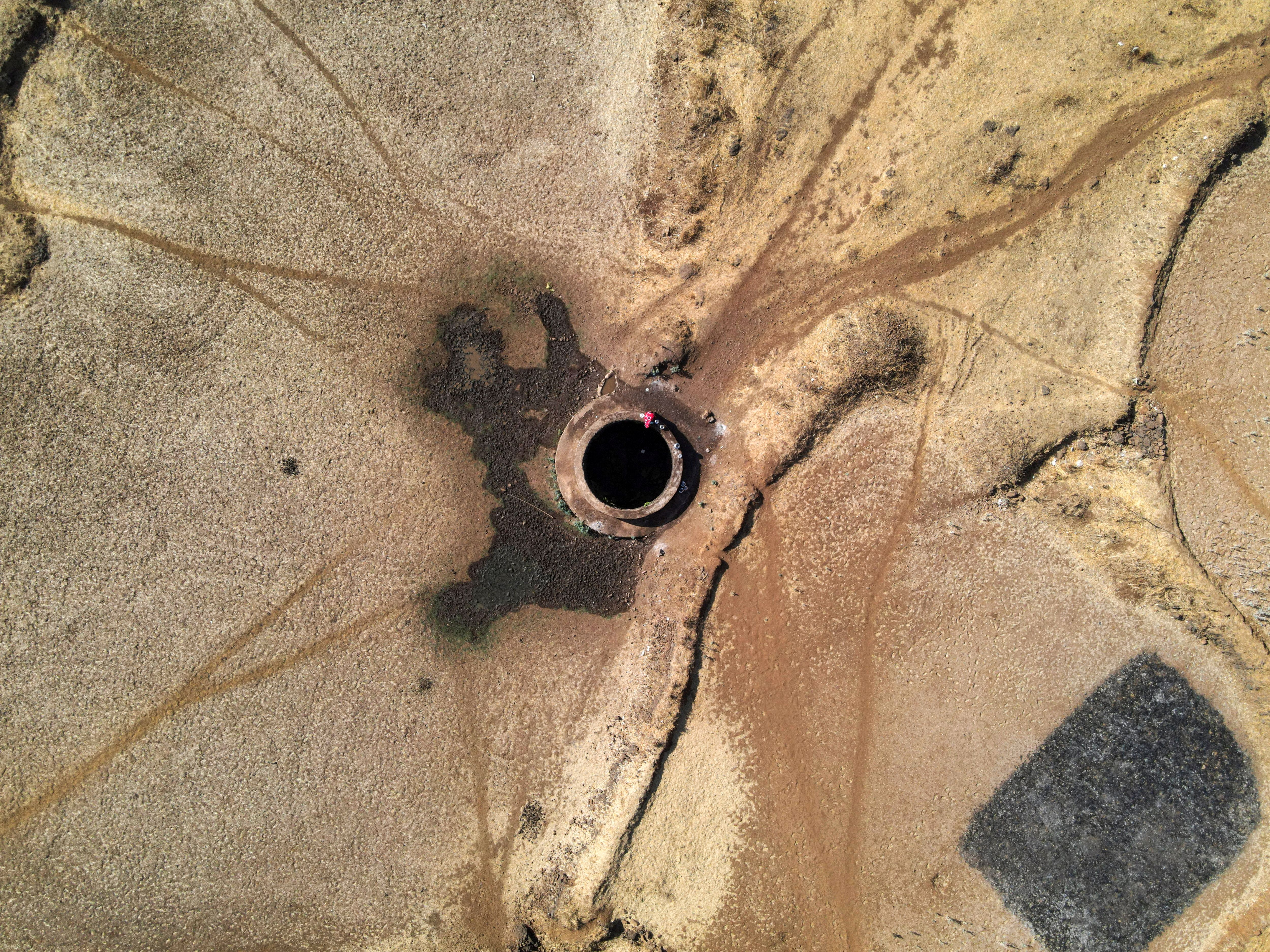 A drone view of a woman drawing water from a parched well in Kasara, India, on May 1, 2024. (Photo by Francis Mascarenhas/Reuters)