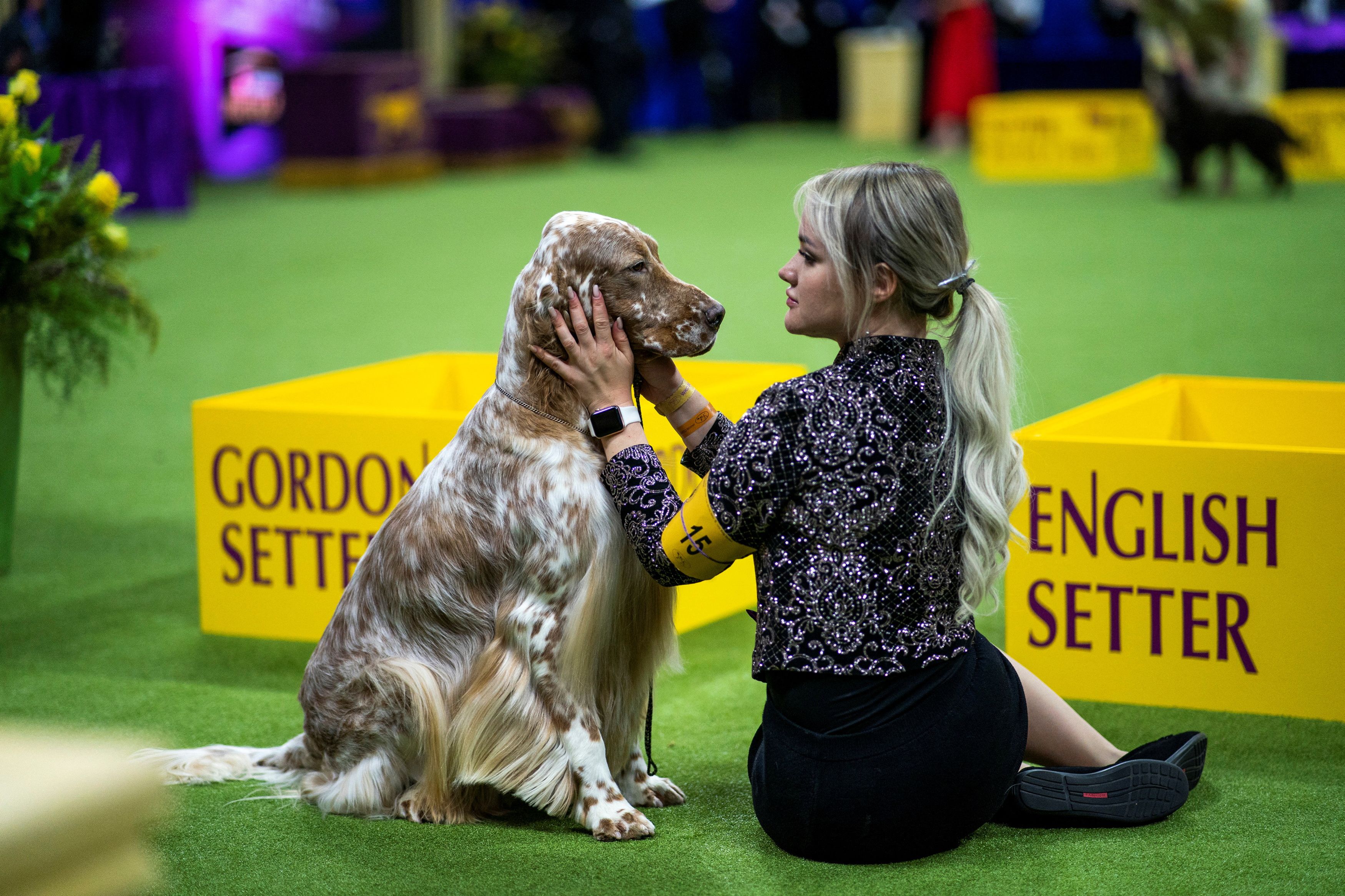 Melandes, an English Setter from Phoenix, Arizona, competes in the Sporting Group during the 148th Westminster Kennel Club Dog Show at the USTA Billie Jean King National Tennis Center in New York City, New York, May 14, 2024. (Photo by Eduardo Munoz/Reuters)