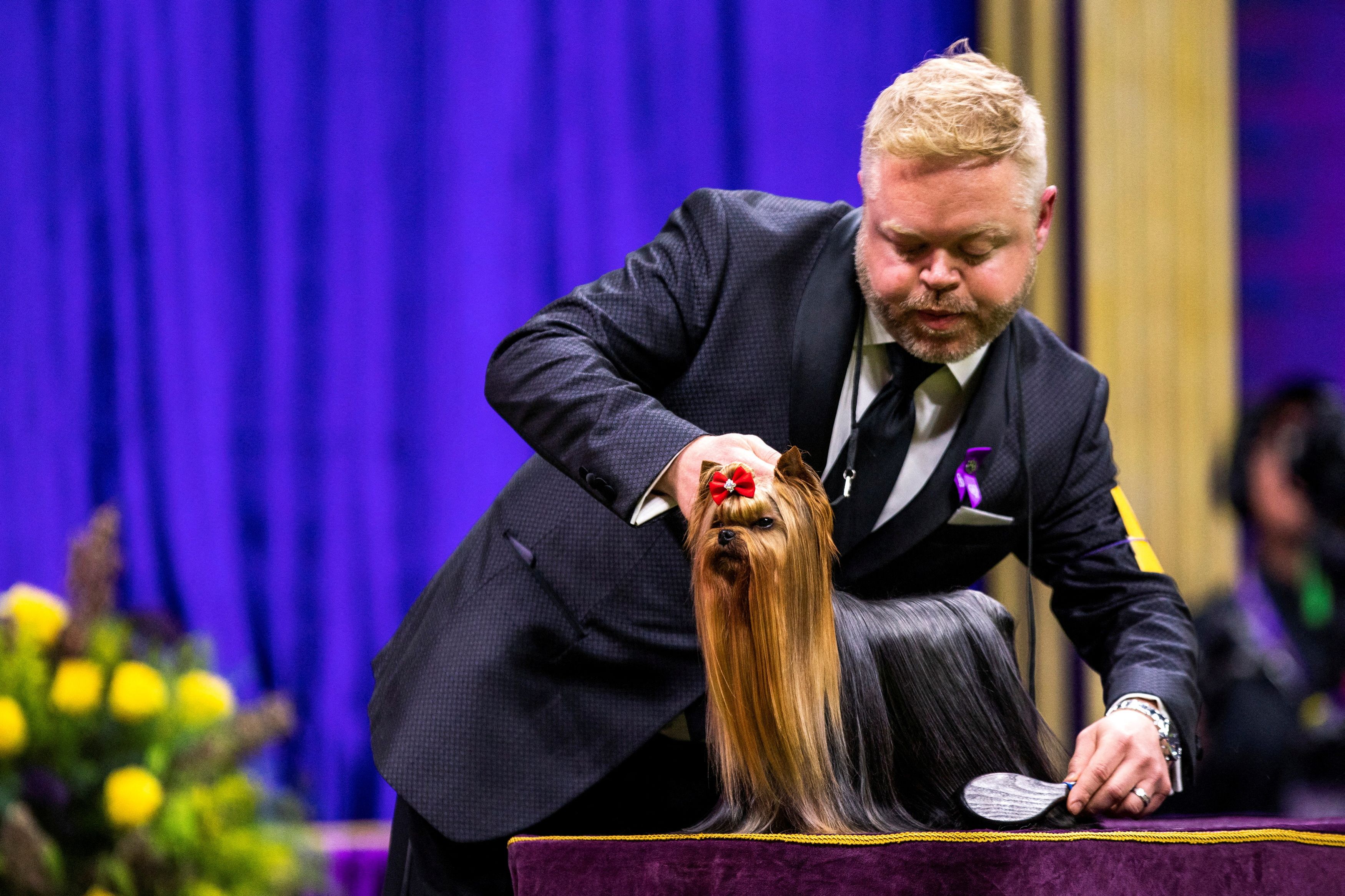 Louis, a Yorkshire Terrier from Willis, Texas, competes in the Toy Group during the 148th Westminster Kennel Club Dog Show at the USTA Billie Jean King National Tennis Center in New York City, New York, on May 13, 2024. (Photo by Eduardo Munoz/Reuters)