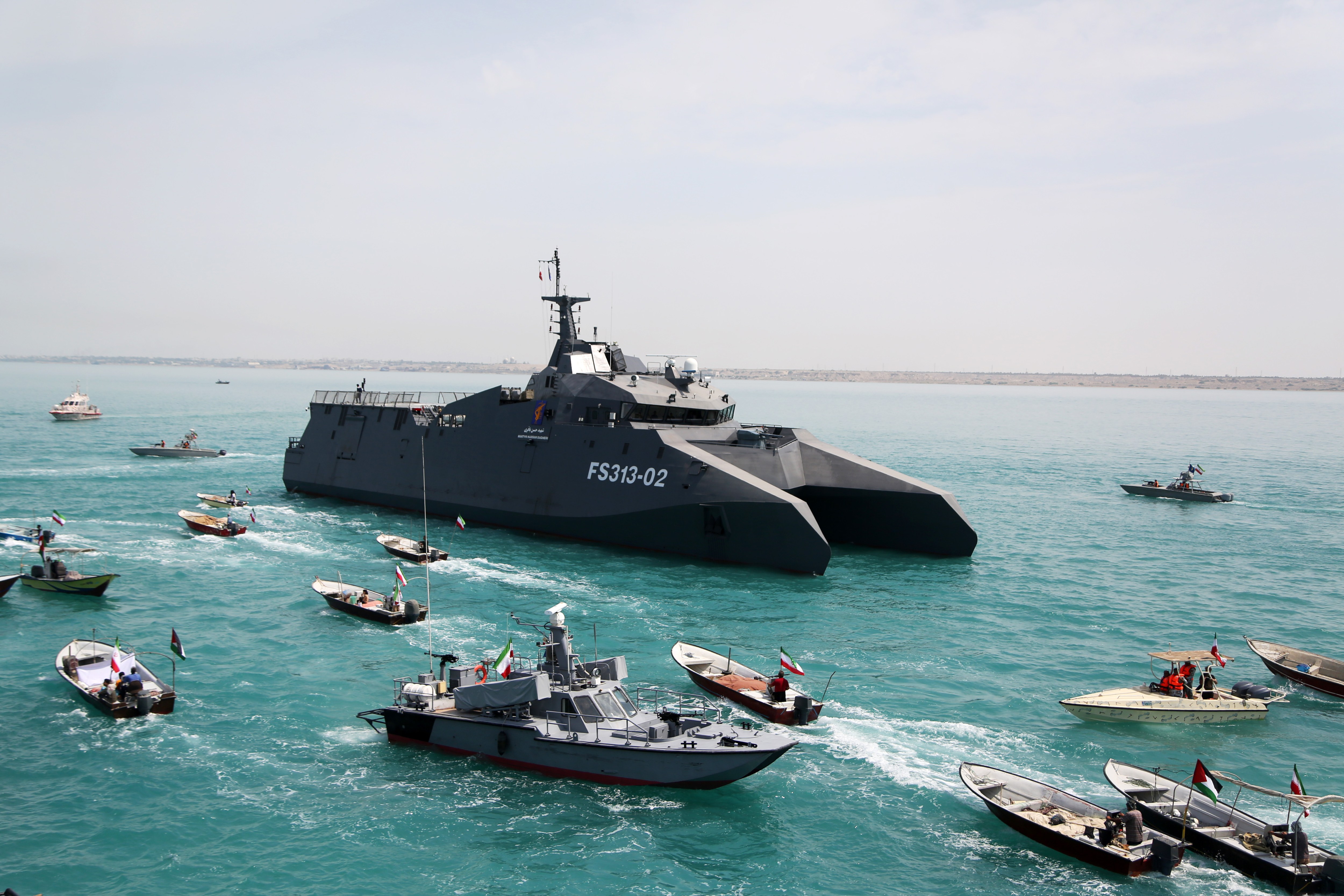 Iranian navy vessels and speedboats conduct manoeuvres during Persian Gulf National Day near the port of Bushehron April 29, 2024. The event celebrates the liberation of the country’s south from Portuguese occupation in 1622. (Photo by Fatemeh Bahrami/Anadolu Ajansı)