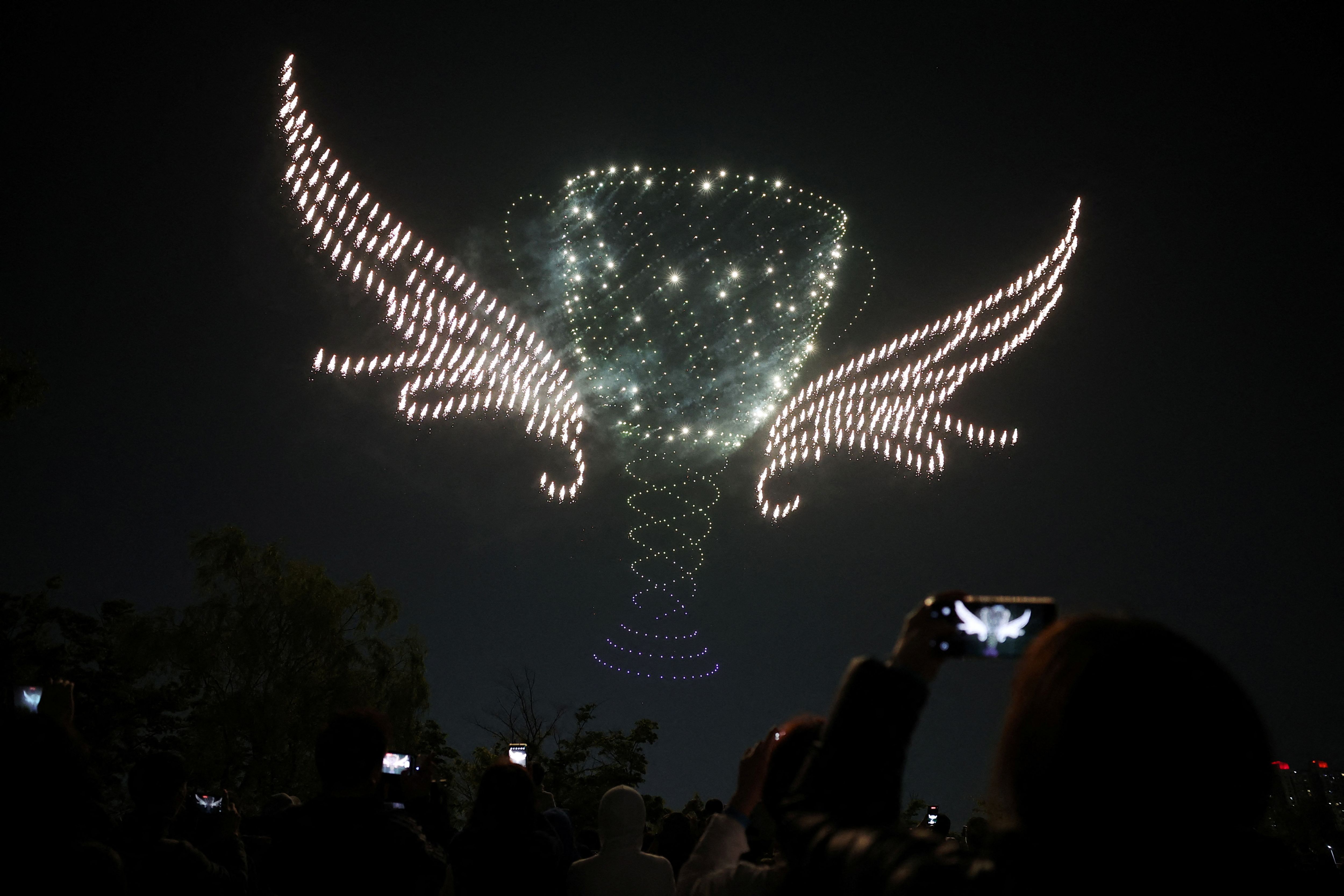 Fireworks drones perform formation flying at the World Drone Light Show 2024 which is part of the 2024 Korea Drone Expo, in Incheon, South Korea, on May 9, 2024. (Photo by Kim Hong-Ji/Reuters)